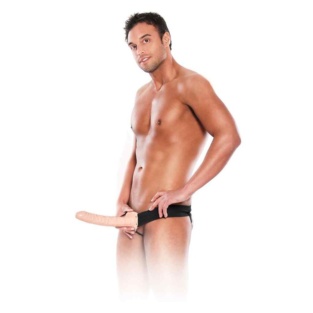 Always hard and always ready! A realistic, hollow strap-on dildo with a stretchy strap-on harness. It can be worn on the penis for more length and girth or used for hot pegging fun. The strap-on harness is adjustable.