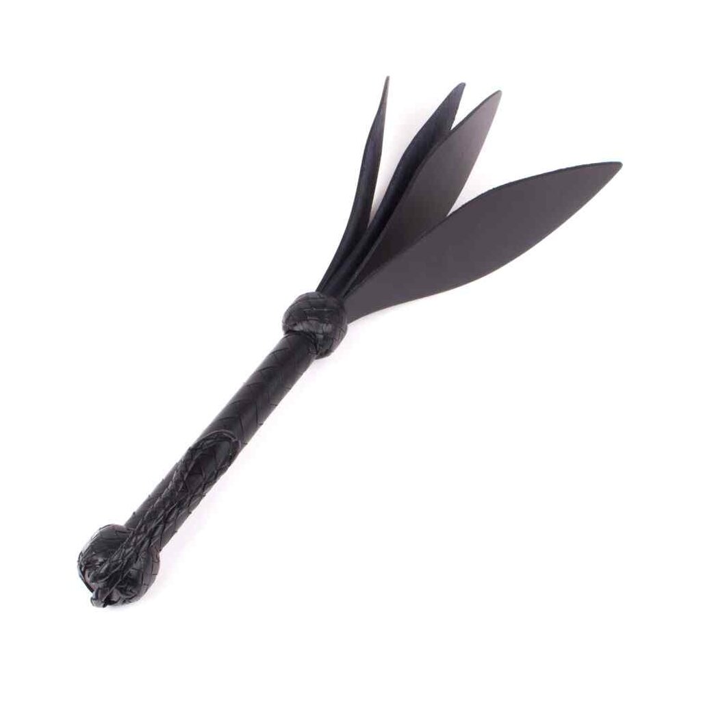 Dieser 3-fache Spaten Slaper ist mit schwarzem Leder geflochten und hat einen sehr starken Griff. Dieses sexy Werkzeug will, dass Sie einige serieus ass whooping oder ''slap'' Ihr Partner mit Liebe haben. Hergestellt in Europa aus robustem Material der Marke Kiotos.