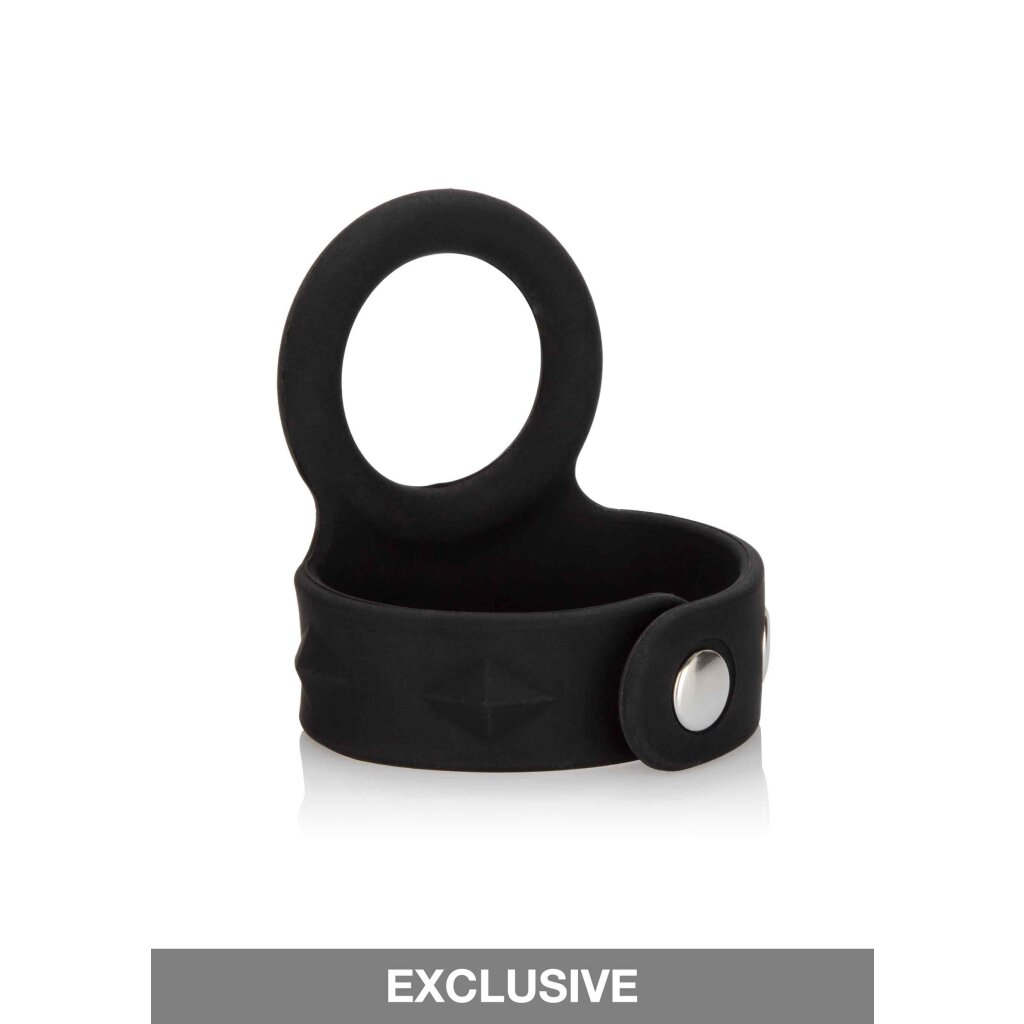 Maximize your orgasmic pleasure with the Silicone Tri-Snap Scrotum Support Ring. The comfortable to wear, easy to use erection enhancer is designed to extend your pleasure, support stamina, and maintain a rock hard erection. The super stretchy, fully adjustable cock ring makes a great addition to an erotic toy collection, and is suitable for first time and experienced usersThe discreet and durable, medium sized ring is made from soft, thick and ultra stretchy phthalate free, unscented silicone, and ensures a comfortable, fully adjustable fit. The tri-snap design features heavy-duty, nickel-free hardware and a sensually smooth, stretchy built-in support ring. Increase the tantalizing tingles and sensations by using a quality lube. Before and after play, clean the support ring with mild soapy water or a toy cleaner spray.