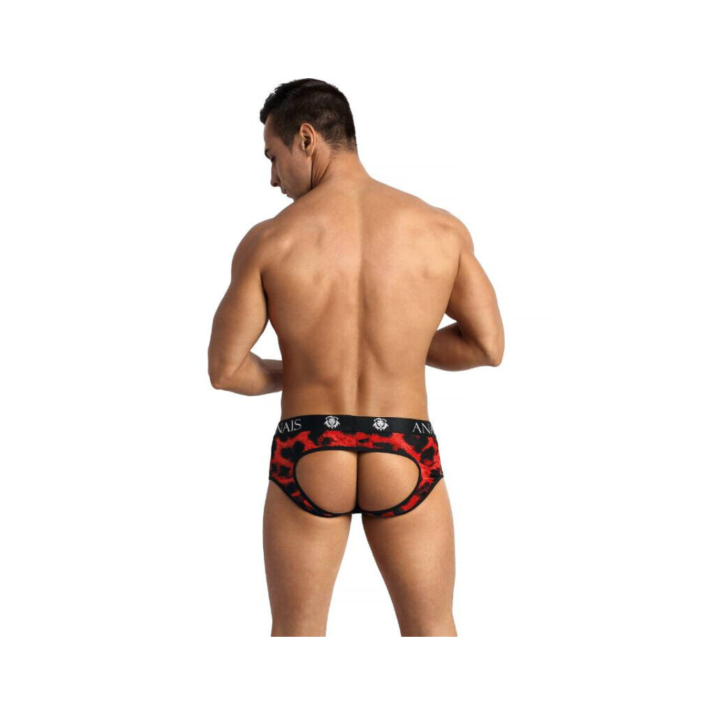 Plongez dans le côté sauvage de la mode avec le jockslip ANAIS Men Savage en rouge avec un imprimé animalier noir.