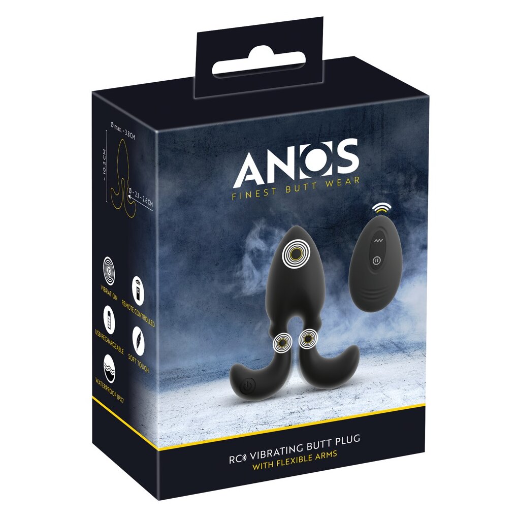 The RC Vibrating Butt Plug with Flexible Arms from ANOS provides all-round anal pleasure. With deep vibrations directly in the tip and intense anal vibrations in the tapered section. The silky-soft silicone plug is easy to insert thanks to its conical design. Thanks to highly flexible anchor arms, the vibro plug sits securely in the anus and adapts to your individual anatomy and movements for a very comfortable fit. Playing and pulling out is also a real treat with the squeezable taper!