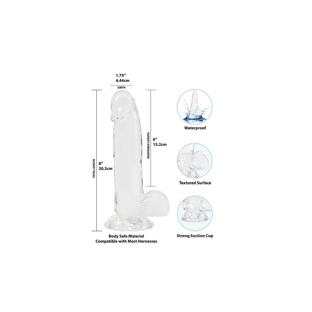 Présentant le gode Crystal Addiction avec boules de BMS Factory. Ce dong transparent de la collection Crystal Addiction a une forme réaliste et mesure 8 pouces de la base à la pointe. Le Crystal Addiction est incroyablement réaliste, avec une pointe lisse sexy, des boules réalistes et des détails veineux.