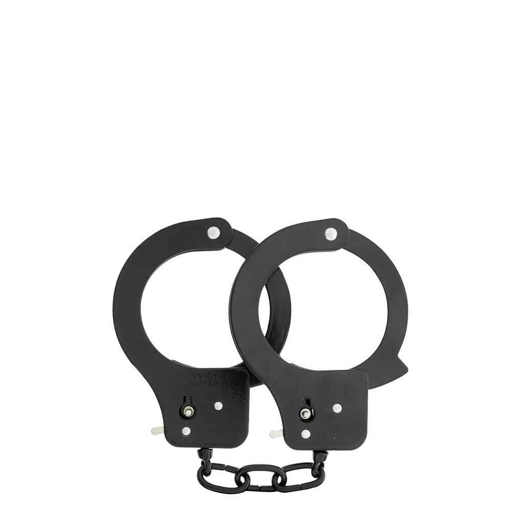 Une paire de menottes en métal faciles à appliquer et à rouvrir. Elles sont reliées l'une à l'autre par une chaîne courte et solide et fournies avec deux clés. Les menottes sont parfaites pour les débutants en bondage. Utilisez-les pour attacher votre amant au lit ou aux meubles, pour lier les poignets ensemble, ou pour créer d'autres positions BDSM qui vous viennent à l'esprit.