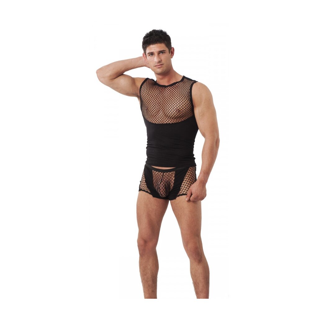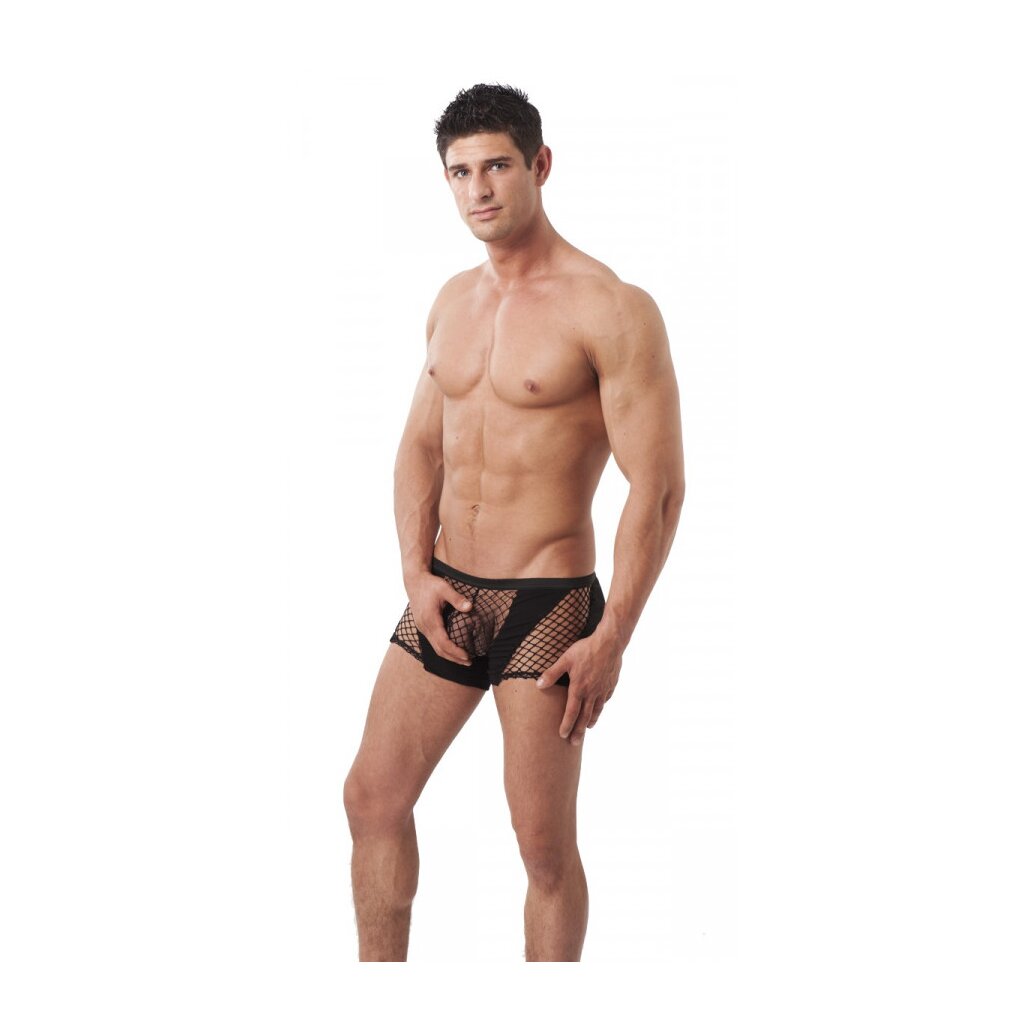 Step into seduction with these black mesh boxer shorts from Amorable by Rimba in size M/L. Designed to accentuate the male form, the fabric blends opaque and transparent zones in a provocative yet elegant way. The stretchy material ensures comfort and a perfect fit, while the sheer mesh panels hint at what lies beneath. Ideal for bold encounters or just to feel sexy under your clothes.