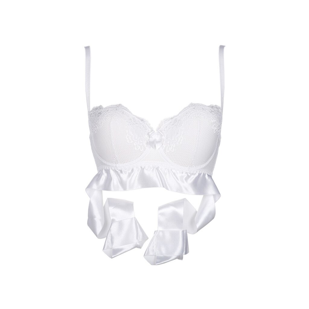 • Underneath the bra's satin-like material was sewn, which act as arm cuffs, this unique