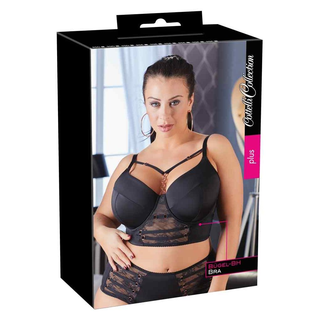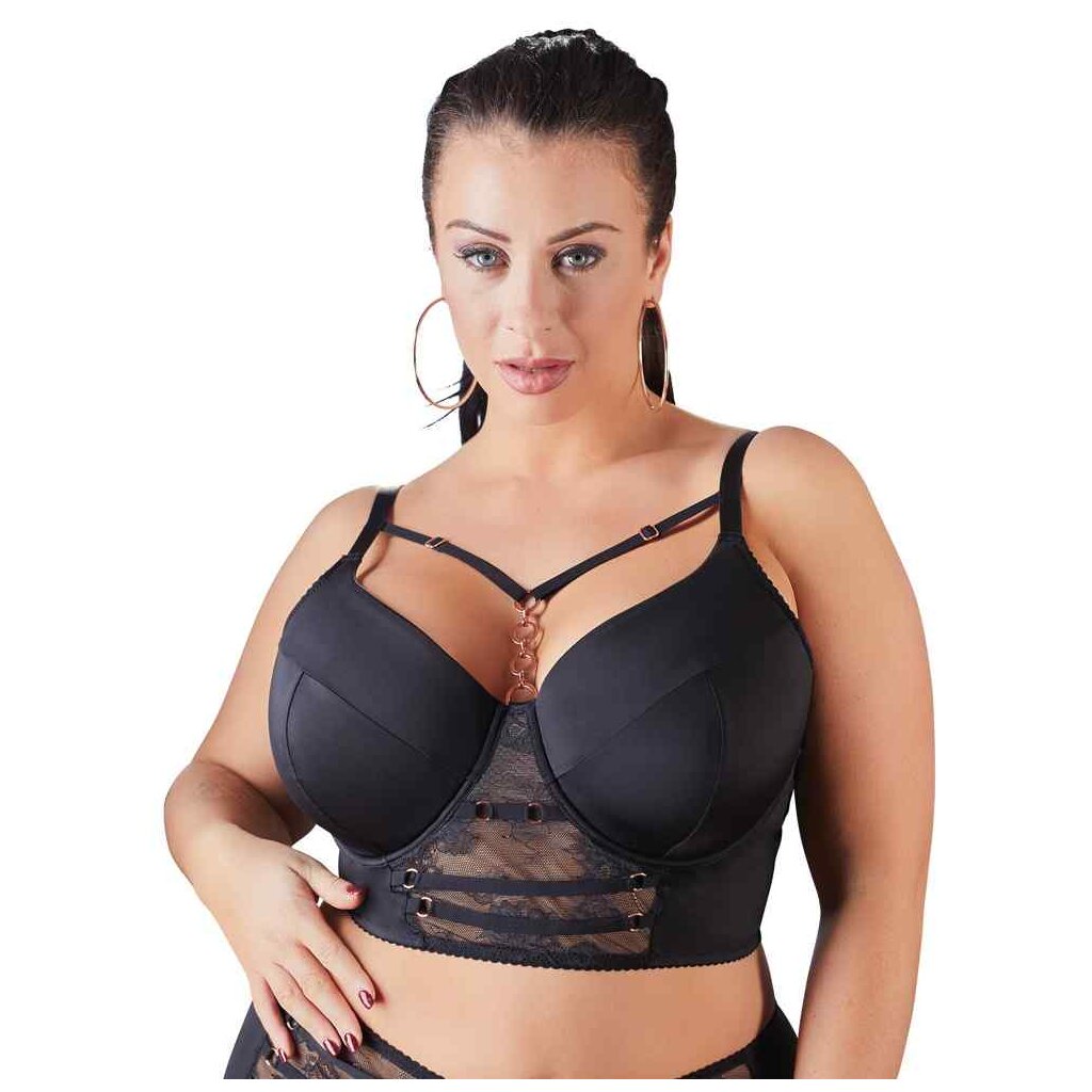 Für ein atemberaubendes Dekolleté! Longline-BH mit leicht gefütterten Bügel-Cups. Die raffinierten Cup-Bänder und die Träger sind für perfekte Passform verstellbar. Schwarz, mit edlen roségoldfarbenen Details. Blickdichtes, elastisches Material 95% Polyester, 5% Elasthan; transparenter Spitzen-Einsatz vorne 90% Polyamid, 10% Elasthan.