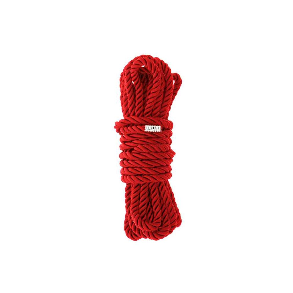Superweiches rotes Bondage-Seil mit seidigem Finish, 5 Meter lang. Beide Enden haben eine Metall-Anti-Fragmentierung. Dies ist ein vielseitiges Seil für mehrere Bindungsoptionen. Es ist ideal für diejenigen, die neu im japanischen Stil Bondage spielen sowie für diejenigen, die mehr Erfahrung in Kinbaku oder Shibari enge Bindung.