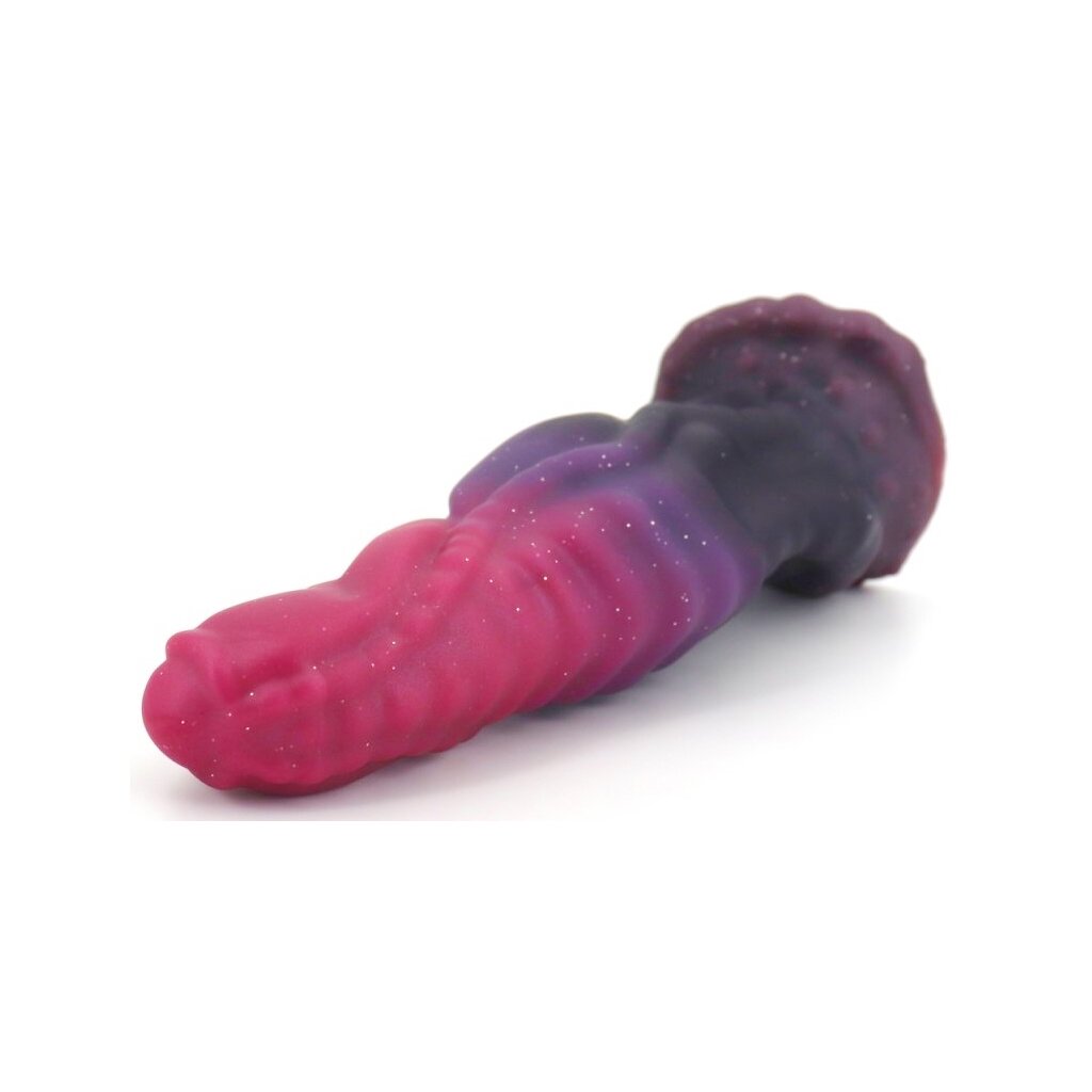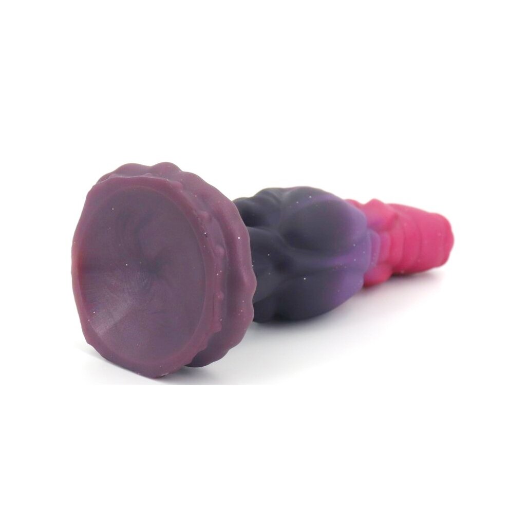 Le godemiché Galactic Varaf de Bad Demon est un jouet excitant pour des moments sensuels seul ou à deux. Décliné dans des tons roses et lilas, il séduit par son style fun et sa forme originale. Avec une longueur d'introduction de 19 cm, il offre une stimulation intense, tandis que sa largeur de 3,5 à 6,2 cm garantit des sensations variées. La surface texturée du godemiché rappelle la peau d'un reptile et procure des stimuli supplémentaires qui augmentent ton plaisir. La base pratique à ventouse permet une utilisation polyvalente, que ce soit au lit, sous la douche ou sur d'autres surfaces lisses. Fabriqué en silicone doux pour la peau, le godemiché Galactic Varaf est agréable à utiliser et facile à nettoyer. Vis des aventures érotiques inoubliables avec ce jouet excitant et découvre de nouvelles dimensions de plaisir.