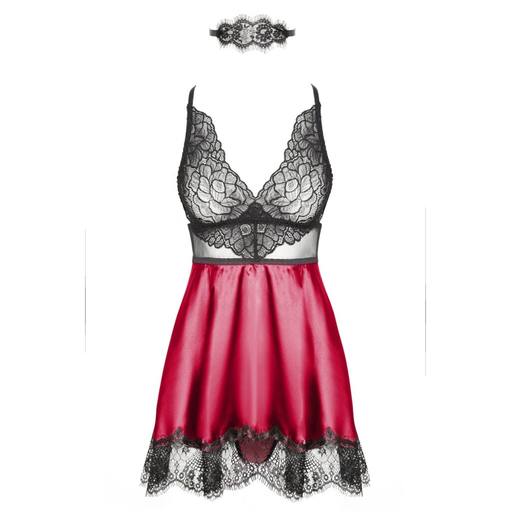 • Verführerische Chemise auszweifarbigem undglänzendem Material gefertigt