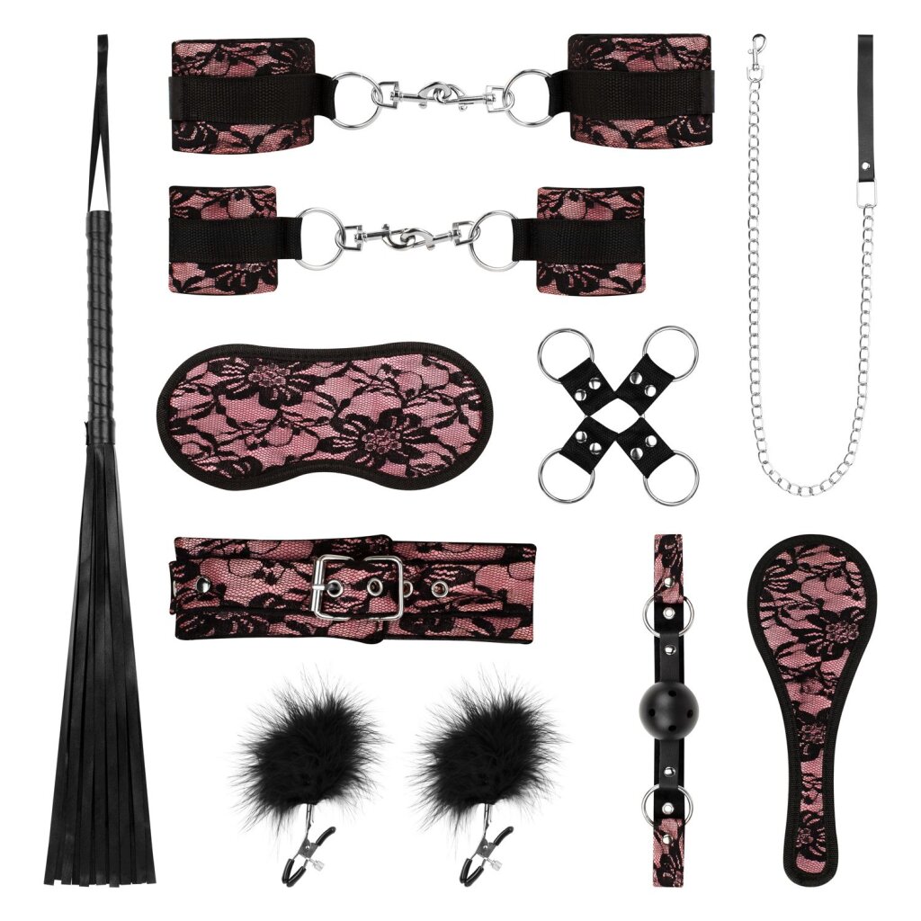 Le set comprend des menottes en dentelle, un paddle doux, des menottes classiques et d’autres accessoires essentiels pour des jeux de soumission et de domination variés. La dentelle délicate se pose agréablement sur la peau tandis que les éléments métalliques apportent une touche d’autorité subtile. Tout a été pensé pour offrir confort, sécurité et une esthétique irrésistiblement érotique.