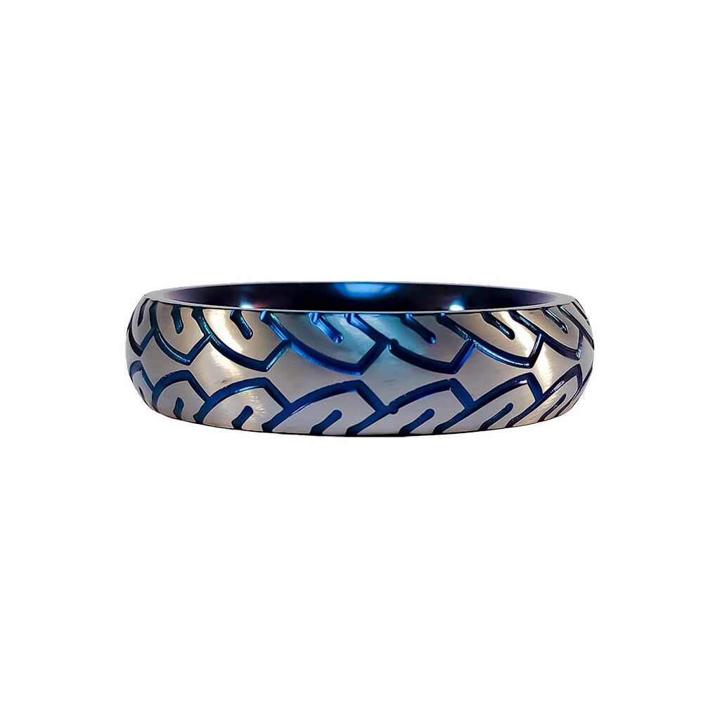 Mit diesem umwerfenden zweifarbigen Blickfang zeigst du ihnen mehr als nur deinen heißen Schwanz! Ein sattes Kobaltblau in einem aufwendig eingravierten Muster rund um das Kuppelprofil funkelt von der glänzenden, gebürsteten Edelstahloberfläche und spiegelt eine Dynamik wider, die man bei einem Cockring bisher nicht kannte.