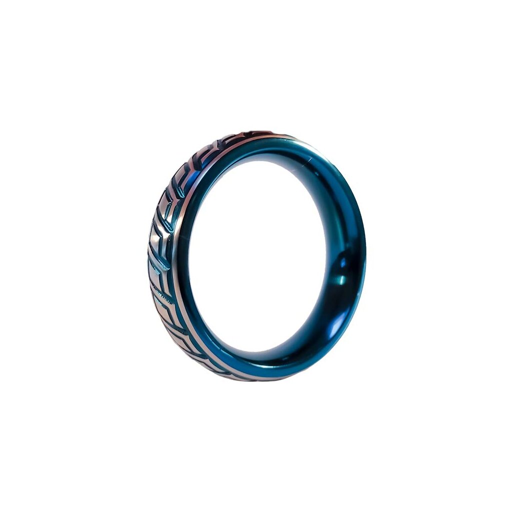 Mit diesem umwerfenden zweifarbigen Blickfang zeigst du ihnen mehr als nur deinen heißen Schwanz! Ein sattes Kobaltblau in einem aufwendig eingravierten Muster rund um das Kuppelprofil funkelt von der glänzenden, gebürsteten Edelstahloberfläche und spiegelt eine Dynamik wider, die man bei einem Cockring bisher nicht kannte.