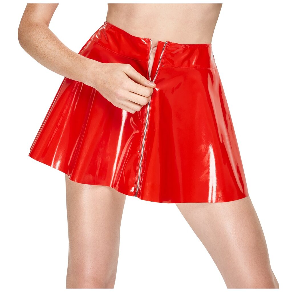 Slightly flared mini skirt from Black Level with a bright red patent shine. With sewn-on waistband. Full-length metal zipper at the front.
