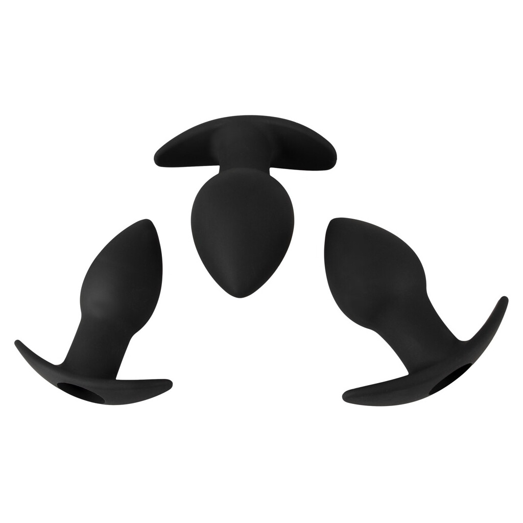 Anal set von Black Velvets mit 3 Analplugs plus 1 Vibrobullet zum Einsetzen. Die Analplugs in verschiedenen Größen und Gewichten eignen sich perfekt für ein 3-stufiges Dehn-Training. Jeder konisch geformte Plug mit einfühlsamer Spitze und sicherem Stopper. Dazu angenehm flexibel und aus Silikon mit Soft Touch Textur für leichtes Einführen und komfortables Dehnen.