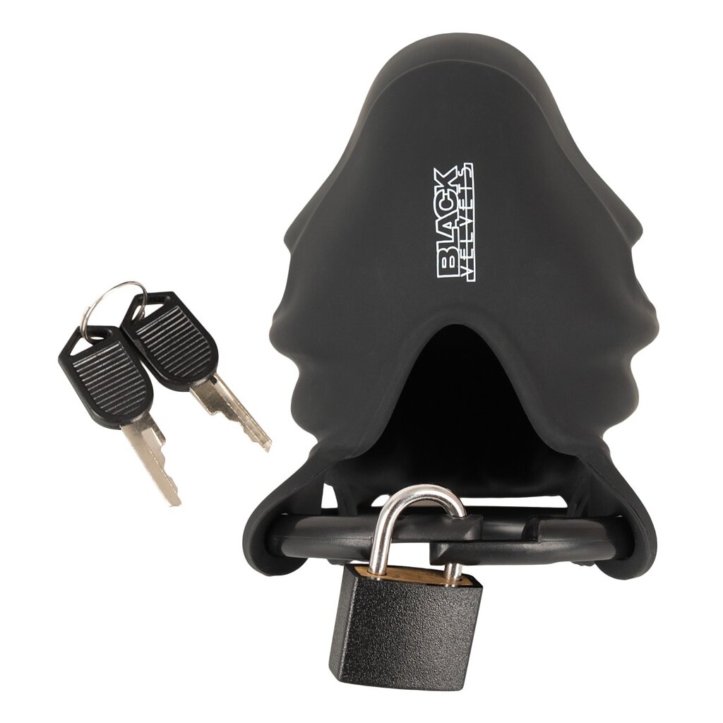 The silicone chastity cage Cock & ball cage from Black Velvets excitingly encloses the penis and testicles. Perfectly adapted to the male anatomy, the flexible cage is easy to put on and take off. The velvety soft silicone adapts perfectly and comfortably. A firm ring holds the light silicone cage firmly and securely in place. Urination is possible through a lower opening. Of course, the penis/testicle cage is lockable – 1 padlock with keys and 3 disposable locks are included.