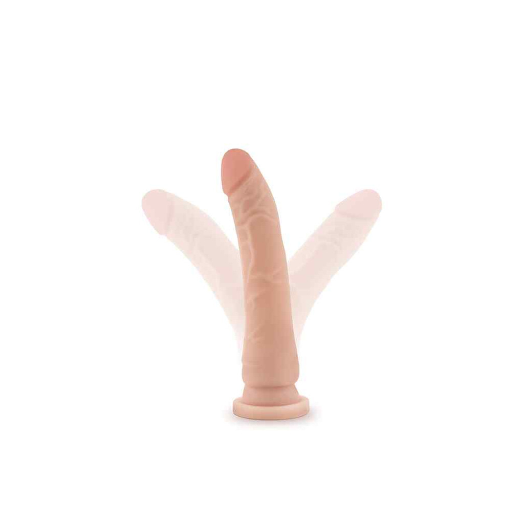 Der Doktor ist da! Der Dr. Skin Realistic Cock ist ein realistischer Dildo mit einer leichten Rundung und einem stabilen Saugnapf-Sockel, der auf jeder glatten, flachen Oberfläche hält, um ihn solo zu benutzen. Oder tun Sie sich mit einem Partner zusammen für Strap-on-Harness-Spaß! Die schlanke Form und der leicht konisch zulaufende Kopf des Realistic Cock machen das Einführen zum Kinderspiel. Zum Reinigen Seife und Wasser oder einen Toy Cleaner verwenden und an der Luft trocknen lassen. Hergestellt aus latex-, parfüm- und phthalatfreiem PVC.