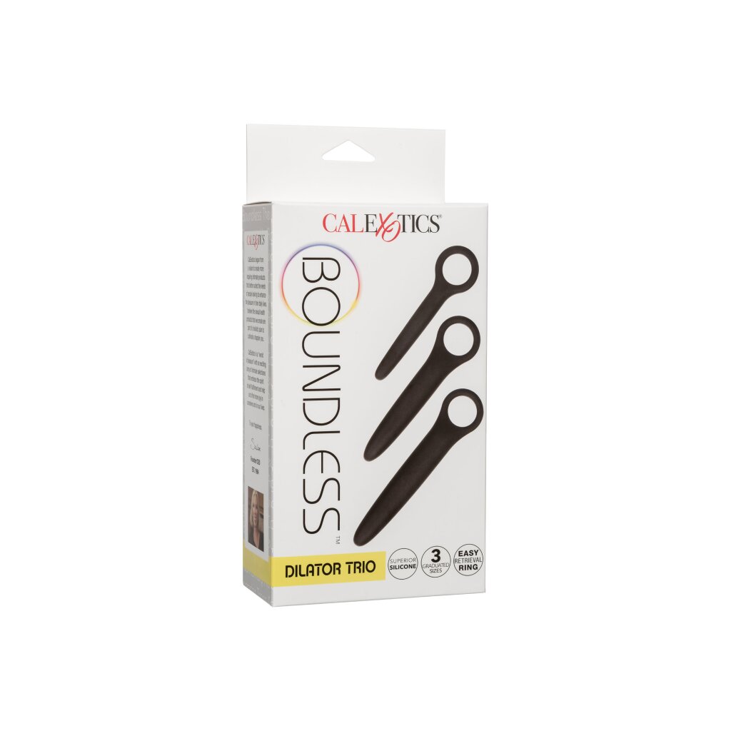 Élargissez vos horizons de plaisir avec le trio de dilatateurs Boundless. Le set de dilatateurs sans couture contient 3 dilatateurs en silicone gradués avec une simple boucle pour le doigt et un design polyvalent. La sonde sensuellement effilée et la taille échelonnée permettent une dilatation en douceur. Les sondes en silicone de haute qualité ont une boucle de doigt durable pour une insertion et une stimulation en douceur. La boucle pratique peut être combinée avec un mini-bullet pour intensifier les sensations ! (Le silicone hypoallergénique de première qualité est bien toléré par le corps, inodore et sans phtalates, pour que vos parties les plus sensibles restent heureuses et en bonne santé. Dimensions du produit : 7,5 x 1,25 cm (dilatateur 1) | 9 x 2 cm (dilatateur 2) | 10,75 x 2 cm (dilatateur 3) / Matériau : silicone