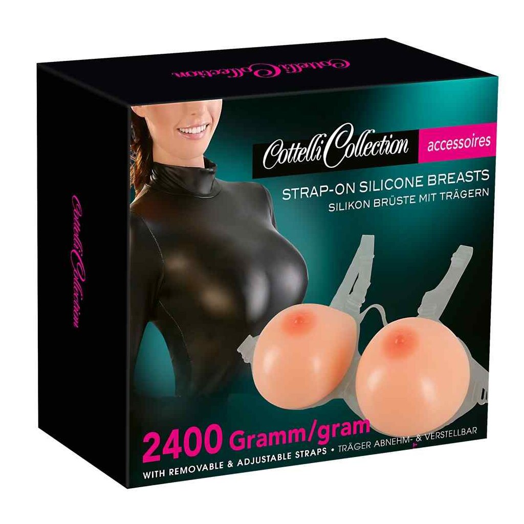 Circonférence 86-105 cm, poids de chaque sein 1200 g. Silicone.