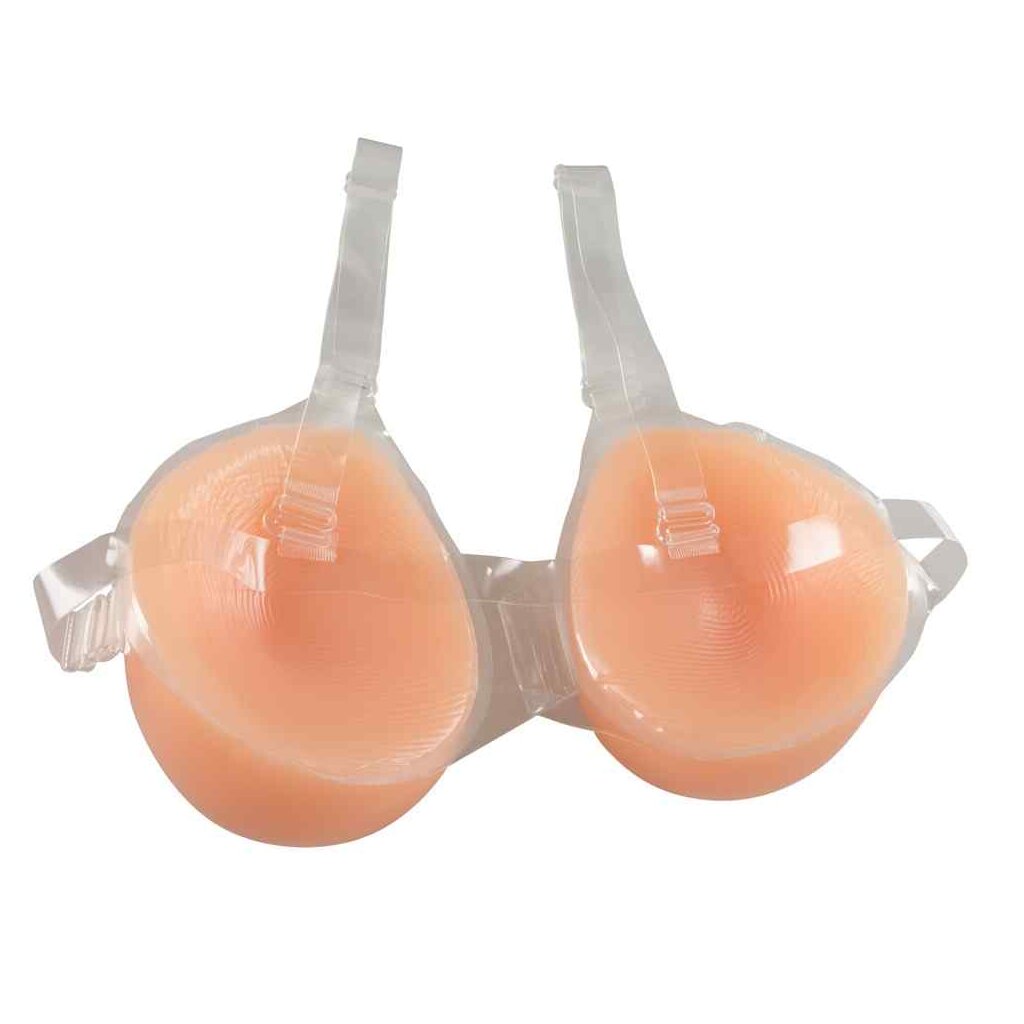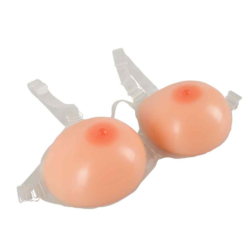 Des seins en silicone qui ont un aspect et une sensation réalistes. Il y a une légère indentation à l'arrière des seins afin que ce "soutien-gorge spécial" puisse également être porté par les femmes ayant une petite poitrine. Avec des bretelles réglables et amovibles.