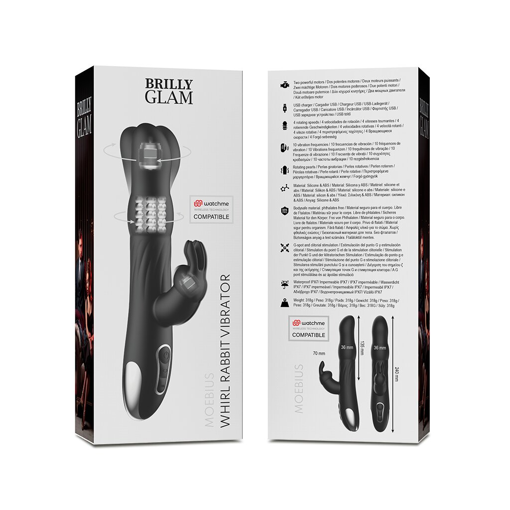 Die Produktreihe MOEBIUS RABBIT VIBRATOR & ROTATOR verfügt über eine Reihe von Funktionen, die noch nie zuvor in einem Vibrator zu finden waren: Stimulation des G-Punkts dank seiner Basis aus weichen, rotierenden Kügelchen und seiner leistungsstarken vibrierenden Spitze, Stimulation der Klitoris dank seines unglaublichen "Kaninchens" und darüber hinaus ist er mit der innovativen Watchme-Fernbedienungstechnologie kompatibel.