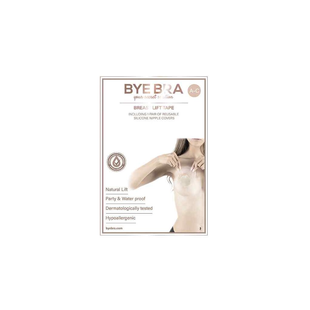 L'autocollant de soutien-gorge Bye Bra maintient les seins en place, tout en permettant à la personne qui le porte de bouger librement et en contenant tout mouvement naturel excessif des seins. Elles sont disponibles en trois tailles : bonnets A-C, D-F et F . La variante A-C contient quatre paires d'autocollants pour soutien-gorge et quatre paires de cache-mamelons, tandis que les autres tailles contiennent trois paires.