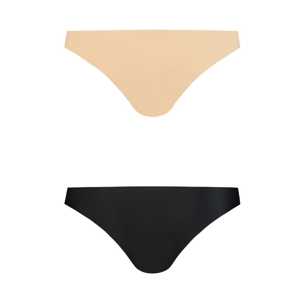 2er-Pack unsichtbare Brazilianslip in Natur und Schwarz. Sie haben einen leichten Stoff und sind komplett nahtlos, perfekt für enganliegende Kleidung! Der Zwickel ist aus 100% Baumwolle, der Slip aus 88% Polyamid und 12% Elasthan. Waschen bei 30 Grad oder darunter. Größe XXL