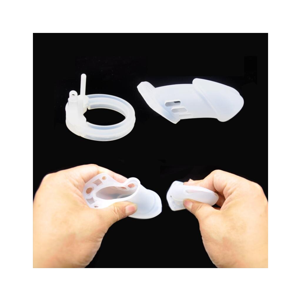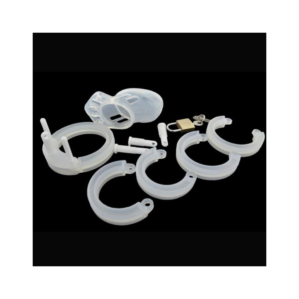 Cette cage de chasteté est un accessoire idéal pour éviter une érection, car le membre est enfermé dans la cage et ne peut pas gonfler. Sa longueur est de 8,3 cm et son diamètre intérieur de 3,5 cm. Il se fixe par des anneaux de 35, 36, 42, 45 et 50 mm de diamètre. Fabriqué en silicone flexible.