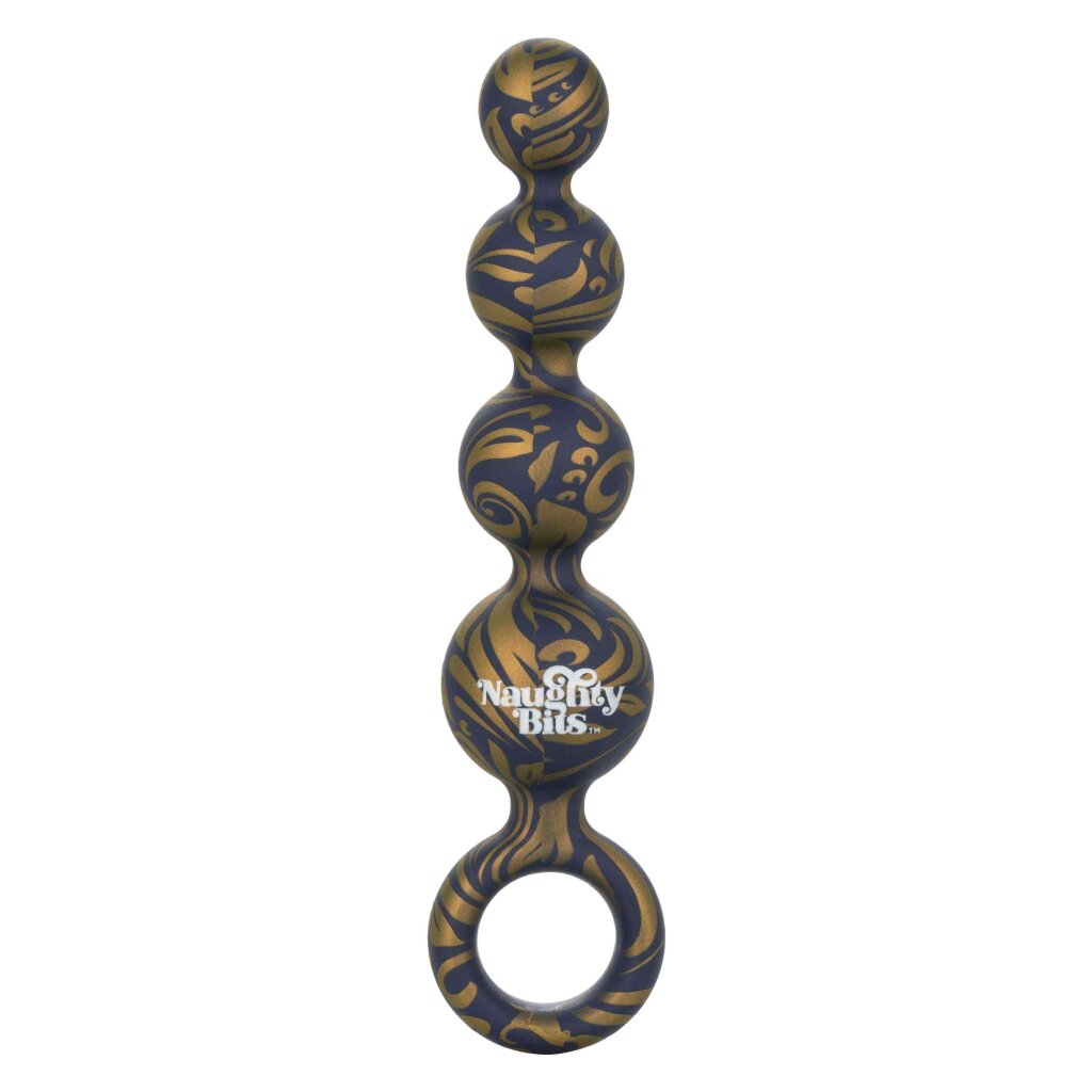 Der Naughty Bits Butt Balls Silicone Booty Beads ist für alle Ihre analen Bedürfnisse mit einem plüschigen Silikon, verjüngten Perlen und einer einfachen Rückholschlaufe gemacht. Der zierliche Plug hat eine robuste, o-förmige Rückholschlaufe für bequemes Einführen, aufregende Stimulation und sicheres, sanftes Entfernen. Perfekt für Anfänger und Erotik-Experten gleichermaßen. Der sich verjüngende Schaft nimmt an Umfang zu und intensiviert das Vergnügen. Die Naughty Bits-Kollektion ist mit ihren auffälligen Designs und orgasmischen Funktionen ein Blickfang auf jedem Nachttisch. Das ultraplüschige Silikon und das goldmarmorierte Muster dieser wunderschönen Analsonde wird selbst den stilvollsten Liebhaber vor und nach dem Sex zum Lächeln bringen. Gesamtlänge: 11,5 cm / Durchmesser: 3,25 cm / Einführbare Länge: 11,5 cm / Wasserdicht / Material: Silikon
