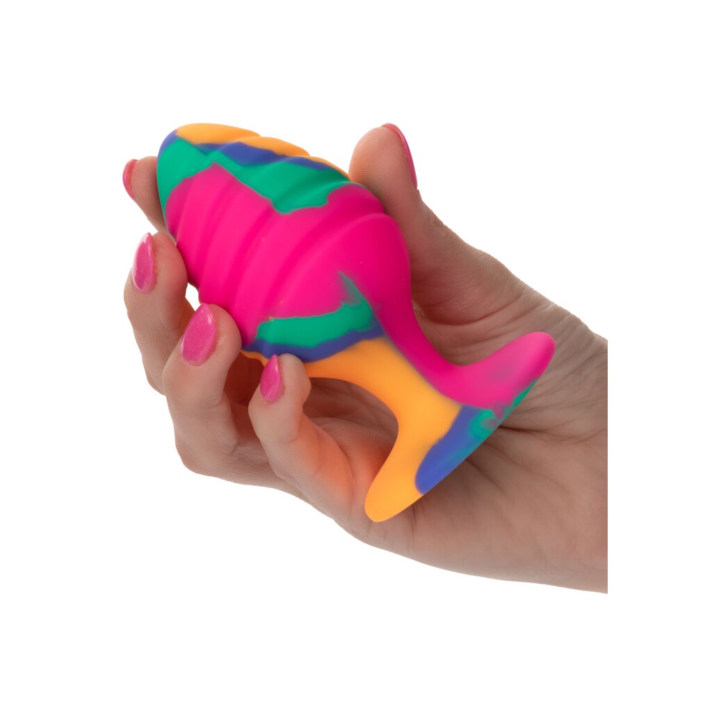 Lassen Sie Ihrer wilden Seite freien Lauf und gönnen Sie sich ein ausgefallenes Vergnügen mit dem Cheeky Swirl Tie Dye Plug. Dieser freche Anal Plug ist mit seinem bunten Tie-Dye-Design, der abgerundeten, spitz zulaufenden Spitze und der vielseitigen Saugnapf-Basis für zusätzlichen Spielspaß wie geschaffen für eine gute Zeit. Während Sie sich in knieerschütternden Empfindungen ergehen, können Sie sich mit dem Silikonplug verwöhnen lassen. Mit dem verspielten Saugnapf-Sockel können Sie ihn auf einer flachen Oberfläche befestigen, um die Hände frei zu haben. Der flexible Plug besteht aus körperverträglichem Silikon mit groovigem Tie-Dye-Design. Diese körperverträglichen Materialien sind unparfümiert und frei von Phthalaten, damit Ihre empfindlichsten Stellen glücklich und gesund bleiben. Gesamtlänge: 9 cm / Durchmesser: 4,5 cm / Einführbare Länge: 7,5 cm / Material: Silikon