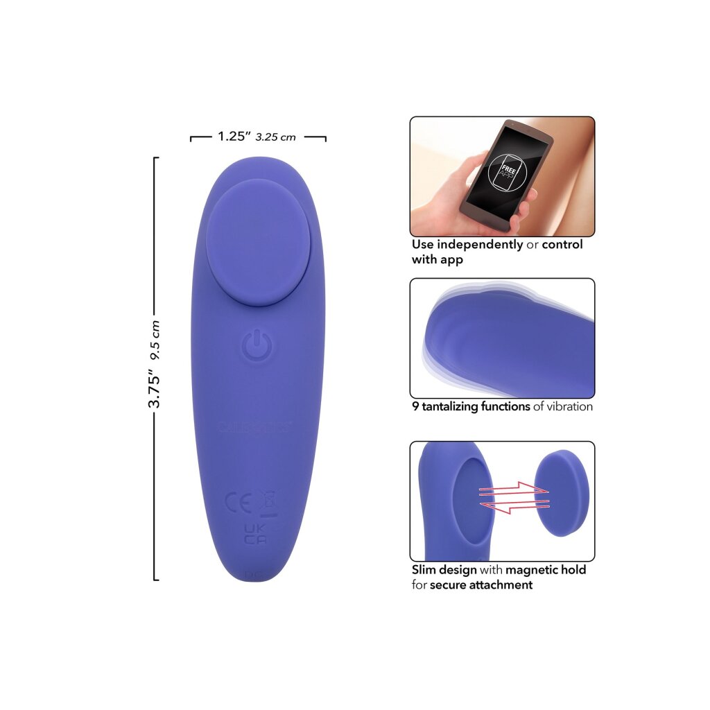 Indulge in discreet pleasure with the CalExotics Connect Panty Teaser. Controlled via an intuitive app, explore 9 functions of vibration, pulsation, and escalation for customizable satisfaction. Crafted for solo or shared play, its slim design ensures secure attachment with a magnetic hold. Crafted from body-safe Silicone, it's waterproof for versatile exploration. A memory chip resumes on your last function, while a travel lock ensures discretion. USB rechargeable, it offers 2 hours for a full charge, providing 40 minutes of high-speed or 60 minutes on a lower setting. Elevate your intimate moments with the CalExotics Connect Panty Teaser for unparalleled pleasure.