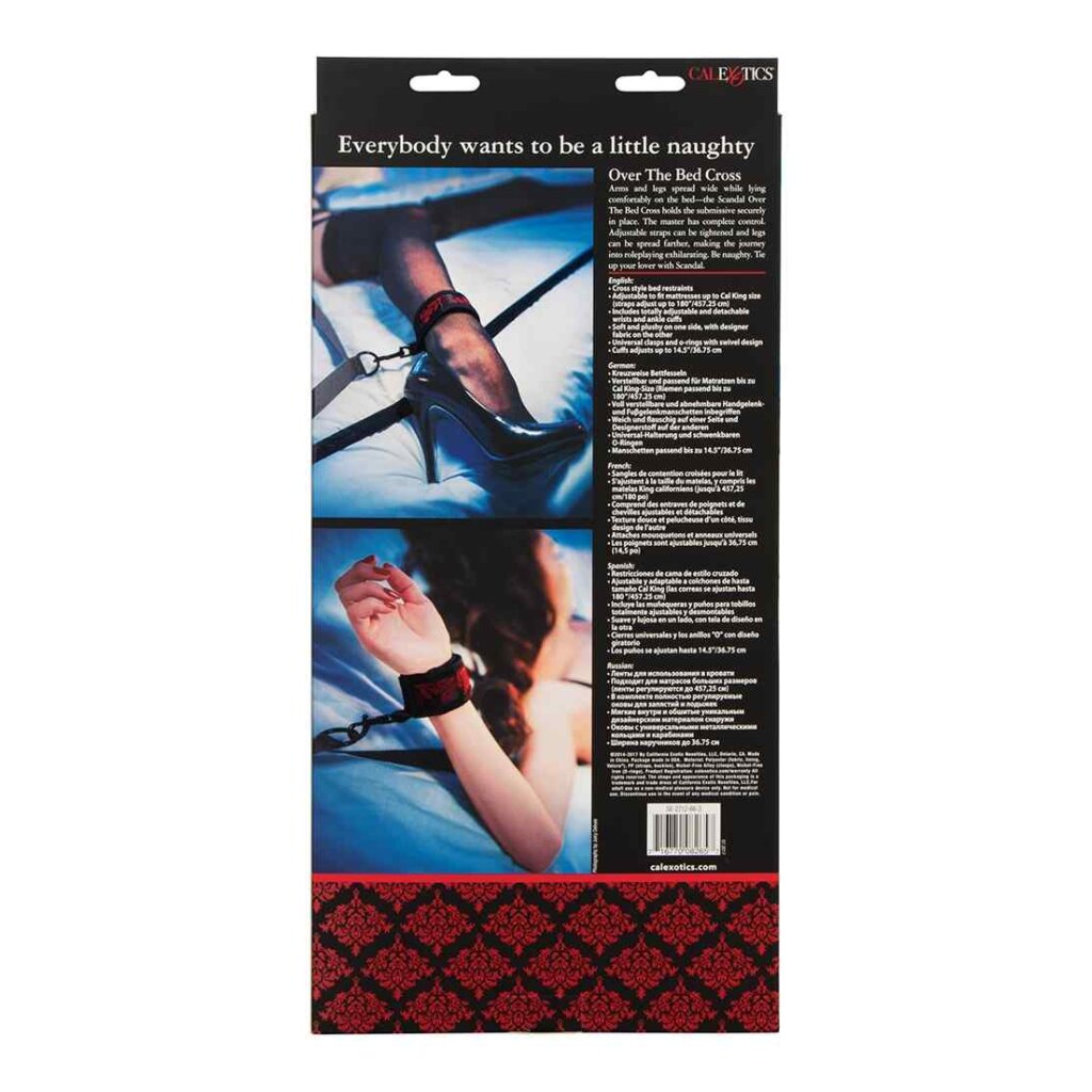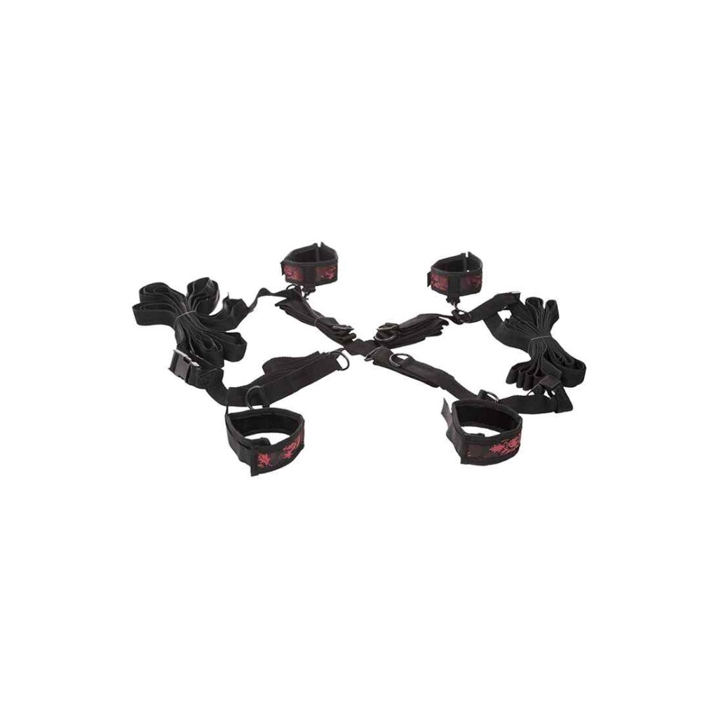 Transformez votre lit en terrain de jeu bondage avec le Scandal®. Ce système de contention est entièrement réglable, s'adapte à toutes les tailles de lit et comprend des sangles résistantes, des boucles pivotantes et des menottes souples pour les mains et les pieds qui maintiennent votre partenaire en toute sécurité, les jambes écartées et exposé(e). Que vous le/la taquiniez, le/la caressiez ou le/la dominiez, la conception en croix garantit un accès illimité à chaque courbe et à chaque désir.