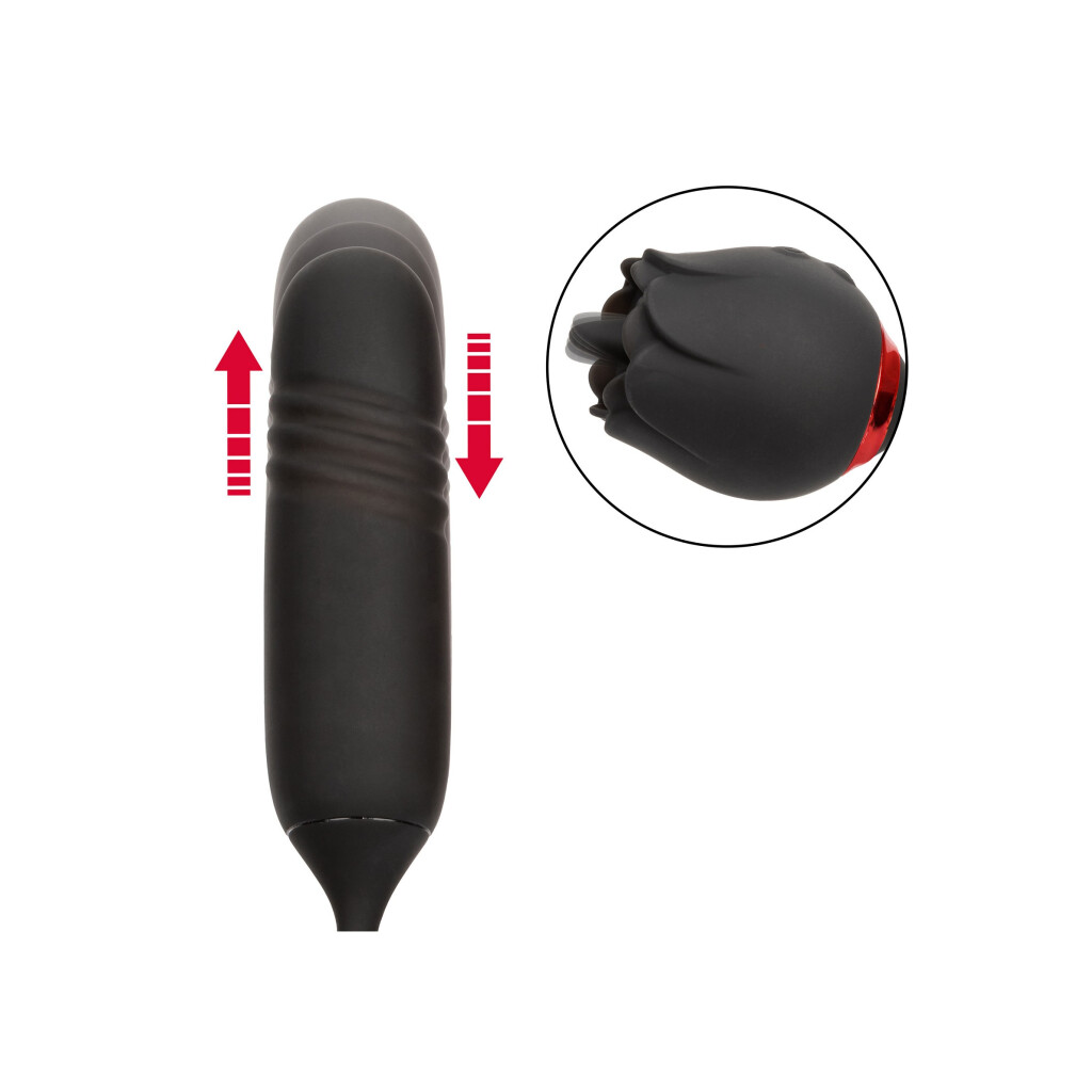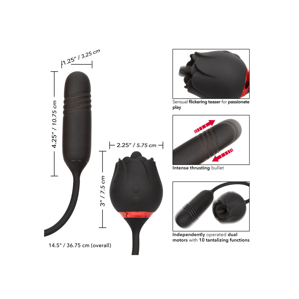 Der French Kiss Elite Romeo, eine erhabene Verschmelzung von Verführung und Innovation. Dieser intime Lustbegleiter verfügt über eine verlockende Kombination aus flackerndem Teaser und stoßender Kugel, die 10 sensationelle Funktionen von Vibration, Pulsation und Eskalation bietet. Die samtig-weiche Textur aus körperverträglichem Silikon verstärkt jede Berührung, während die Wasserdichtigkeit nach IPX7 zu Abenteuern im Wasser einlädt. Zwei Motoren, die unabhängig voneinander betrieben werden, bieten die Freiheit der Wahl, den flackernden Teaser und das stoßende Geschoss separat oder gleichzeitig zu erleben. Mit einem Speicherchip für eine nahtlose Fortsetzung, einer Reisesicherung für Diskretion und einer kurzen Aufladezeit von 1,5 Stunden können Sie sich 60 Minuten lang in Hochgeschwindigkeit oder 80 Minuten lang in langsamer Geschwindigkeit verwöhnen lassen. Erhöhen Sie Ihr Vergnügen mit dem French Kiss Elite Romeo, wo Lust auf Raffinesse trifft.