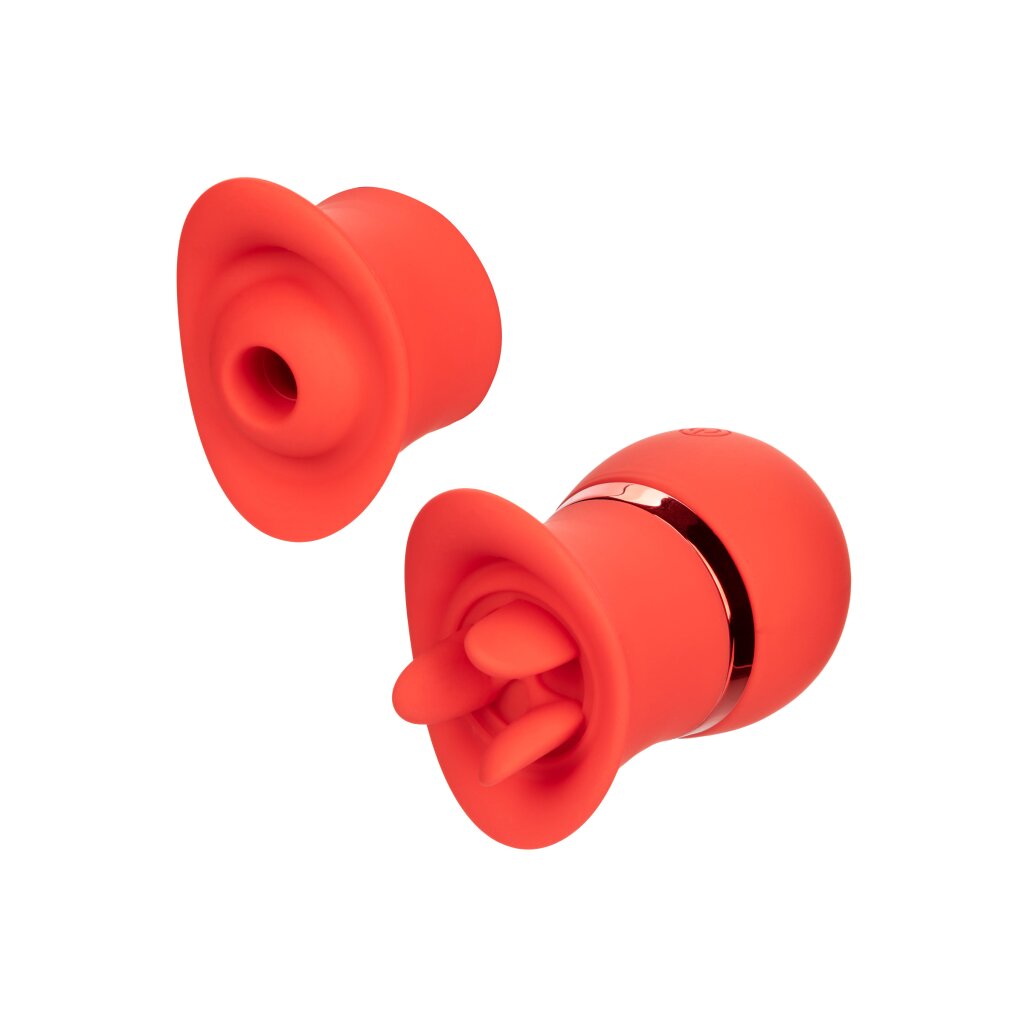 Doppeltes Vergnügen, oh la la! Das sinnliche French Kiss Suck & Play Interchangeable Set weiß genau, was Sie brauchen: 2 austauschbare Aufsätze mit 12 Vibrationsfunktionen oder 12 Saugfunktionen. Der Vollkontaktaufsatz und der flatterhafte Dreifach-Zungenreizaufsatz sind so konzipiert, dass sie sich mit 12 intensiven Funktionen perfekt an Ihre intimsten Lustpunkte anpassen. Tauschen Sie die sinnlich geformte Hülle aus und genießen Sie 12 Funktionen erregender Absaugung oder geben Sie sich einem echten Zungenkuss mit 12 Funktionen flackernder Action hin. Das weiche, anschmiegsame Silikon und der sinnlich geformte Körper sorgen für punktgenaues Vergnügen aus fast jedem Winkel. Mit dem Easy-Touch-Knopf können Sie bis zu 50 Minuten Vergnügen steuern. Laden Sie Ihr Vergnügen in nur 1 Stunde mit dem mitgelieferten USB-Kabel in der selbstdichtenden Ladebuchse des Massagegeräts auf. Die diskrete Größe des Mini-Massagegeräts und die Reiselocktaste machen es zum perfekten Reisebegleiter, mit dem Sie sich überall dort vergnügen können, wohin Ihre Fantasien Sie führen. Produktmaße: 5 x 3,75cm (Arouser) / 8,25 x 4,5cm (insgesamt) / 12 Vibrationsmodi / 12 Geschwindigkeitsmodi / Wasserfest / Material: Silikon (Stimulator) ABS mit Metallic-Beschichtung (Dekor) / Wiederaufladbar