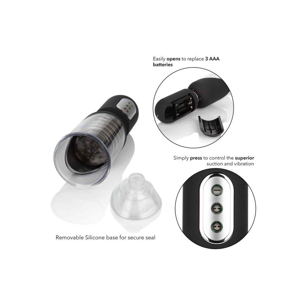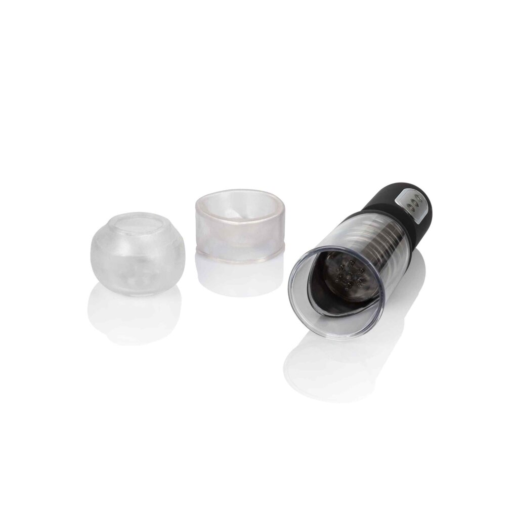Mach Dein Lustgerät noch größer mit dem Optimum™ Series Get Hard™ Head Pump Set. Diese vollautomatische Hightech-Pumpe liefert 3 Stufen intensiver Saugkraft, 5 Vibrationsfunktionen und ein Vibrationskissen für wirklich explosive Ergebnisse. Steigere Deine Ausdauer oder gib Dich dem totalen Vergnügen hin mit 3 Stufen der Saugstimulation und 5 unabhängigen Vibrationsfunktionen. Ein weiches, vibrierendes Kontaktkissen mit Kitzlern gibt Dir das flächendeckende Gefühl, nach dem Du Dich sehnstTauche tief in die intensive Saugkraft ein, während das weiche, vibrierende innere Landekissen mit den kitzelnden Kitzlern Dein Lustwerkzeug mit flächendeckender Stimulation reizt. Genieße eine starke Saugkraft und eine hervorragende Abdichtung mit zwei einzigartigen, austauschbaren Donuts. Verwende den einfachen Donut für Deine normale Pump-Session und den anderen, ultra-dichten Donut für knieerschütternde Stimulation. Diese abnehmbare, offene Kammerhülse ist einfach zu benutzen, leicht zu reinigen und erfordert keine besondere Pflege.