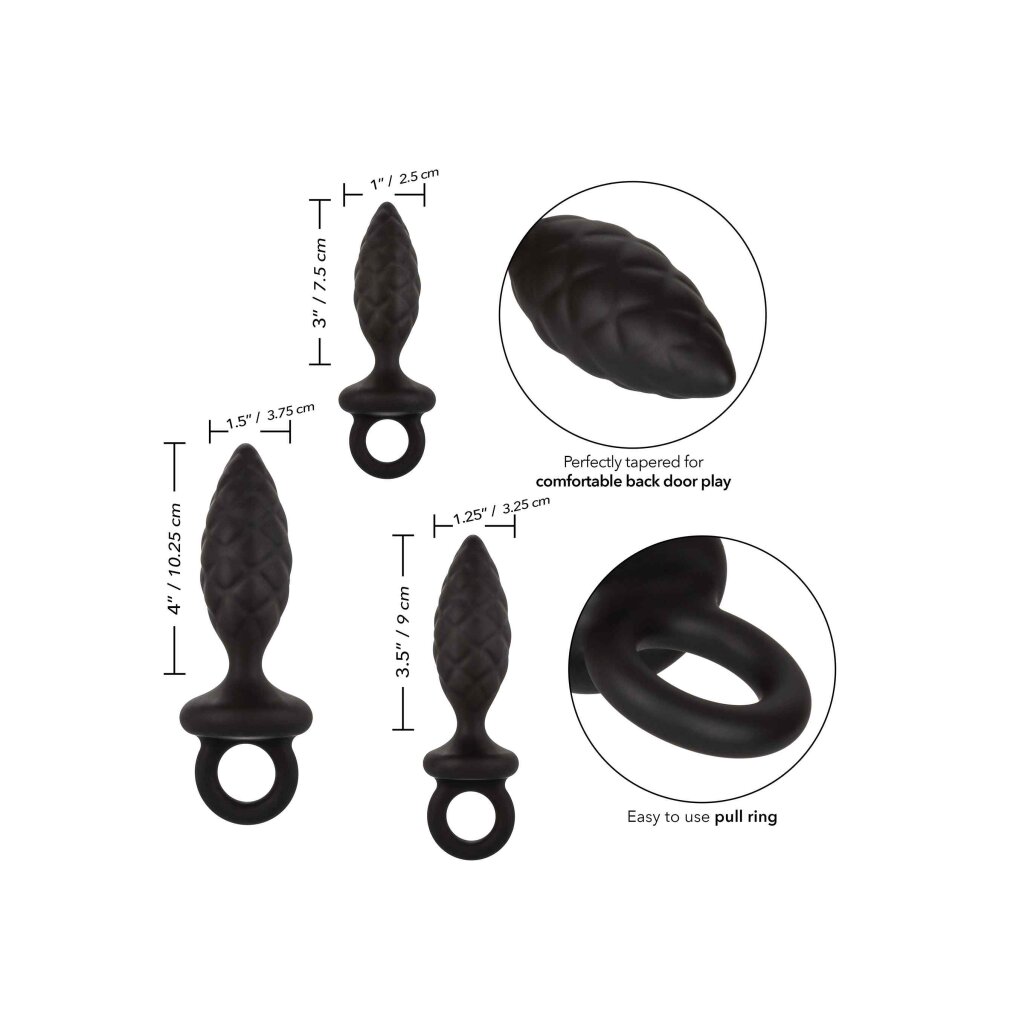 Öffnen Sie die Tür zu einem aufregenden analen Erlebnis mit dem Silicone Anal Probe Kit. Dieses aufregende Anal-Trainingsset enthält einen Satz von 3 abgestuften Analplugs mit einfachem Zugring und unglaublich strukturierter Oberfläche. Um alles zu genießen, was die aufregende Welt des Analspiels zu bieten hat, ist Training angesagt, um absolute Sicherheit und Zufriedenheit zu gewährleisten. Jede Sonde in unserem Kit erhöht sich allmählich in Länge und Umfang für ein großartiges Vergnügen auf jeder Ebene der Lustspiel.