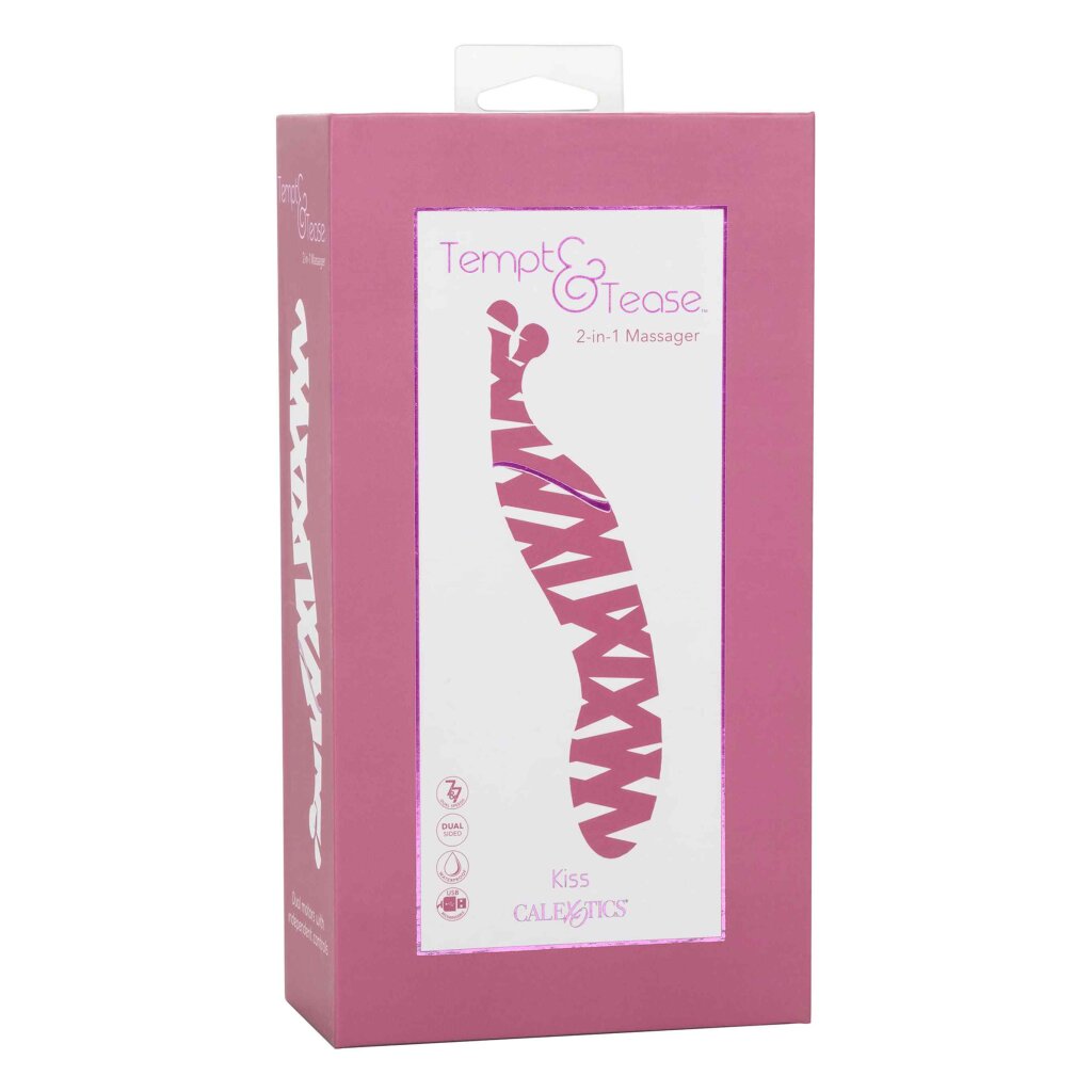 Das Tempt and Tease Kiss ist ein doppelseitiges Massagegerät, das genau weiß, wonach Sie sich sehnen. Spüren Sie den Wärmeanstieg mit dem Doppelmassagegerät mit zwei charakteristischen Spitzen, zwei leistungsstarken Motoren und 7 unabhängig voneinander gesteuerten Vibrationsfunktionen. Mit einer vielseitigen Form und zwei leistungsstarken Vibrationsmotoren an jeder Spitze erreichen Sie im Handumdrehen neue klimatische Höhen. Kitzeln und necken Sie äußerlich mit den flackernden weichen Perlen-Teasern oder tauchen Sie mit der geschwungenen G-Seite tief in die grollende innere Stimulation ein. Wählen Sie Ihren Spaßstil mit zwei unabhängig voneinander gesteuerte Motoren an jedem Ende dieses doppelseitigen Massagegeräts und Sie werden dieses sexy Massagegerät nie satt. Gesamtlänge: 17.75 cm / Durchmesser: 3,25 cm / Vibrationsmodi: 7 / Geschwindigkeitsmodi: 7 / Wasserdicht / Aufladbar über USB / Material: Silikon - ABS-Kunststoff