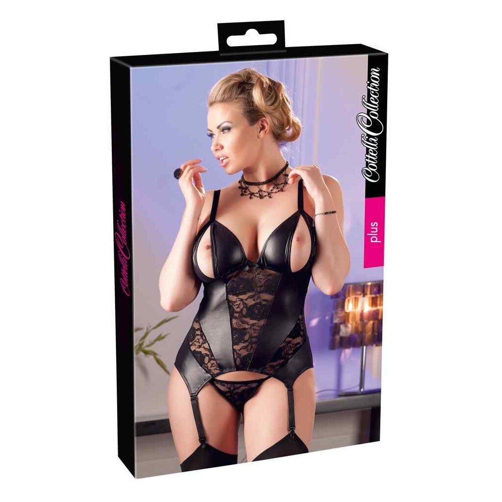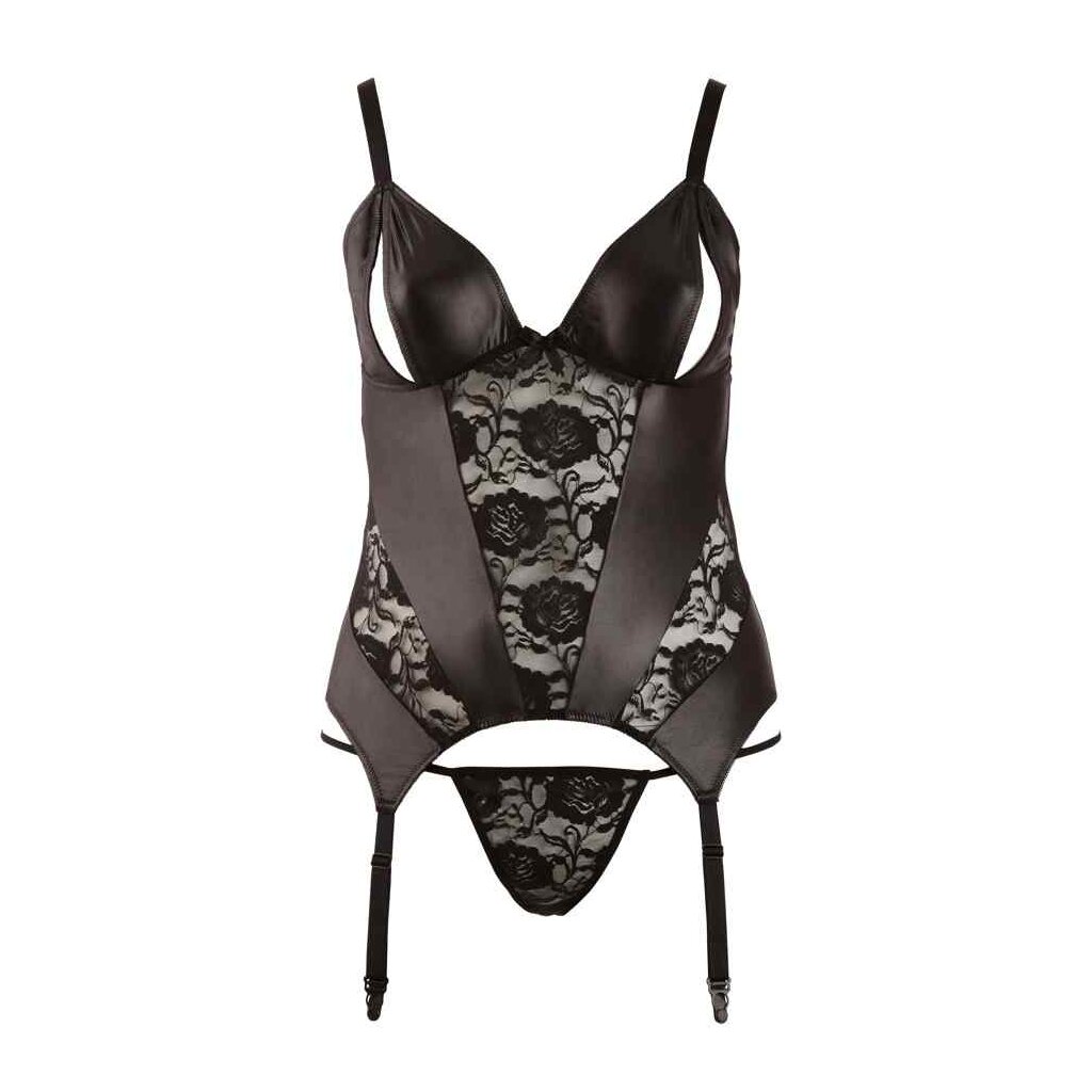 Séduisant et ouvert à tous les bons endroits ! Jarretelle cami noire avec bonnets ouverts et inserts en dentelle. Toutes les bretelles sont réglables. Fermeture par crochet dans le dos. 60% polyamide, 30% polyester, 10% spandex. String en dentelle inclus : 90% polyamide, 10% spandex.