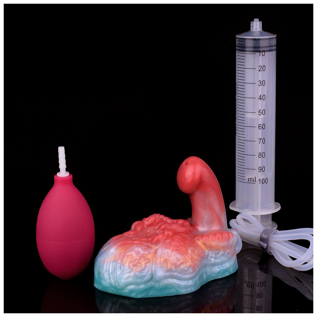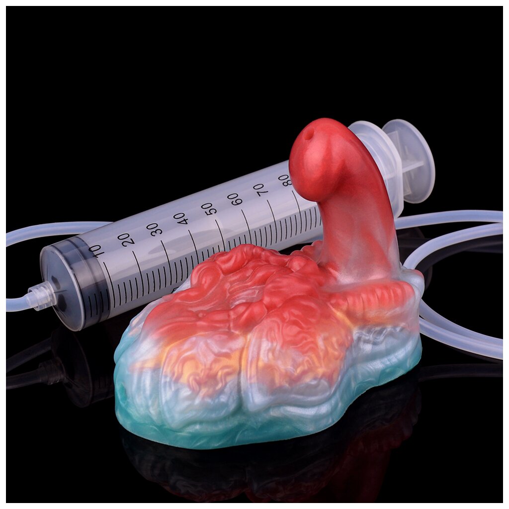 Der Clarence - Squirting Dildo ist ein Fantasy Toy, das kompaktes Design mit spannenden Funktionen verbindet. Mit einer Länge von 11,6 cm, einer Breite von 8,1 cm und einer Höhe von 8,6 cm eignet er sich ideal für abwechslungsreiche Spielmomente. Die einführbare Länge von 5,5 cm ist optimal für kurze und gezielte Stimulation, während das Gewicht von 343,9 g inklusive Injektorpumpe eine sichere und stabile Handhabung bietet.