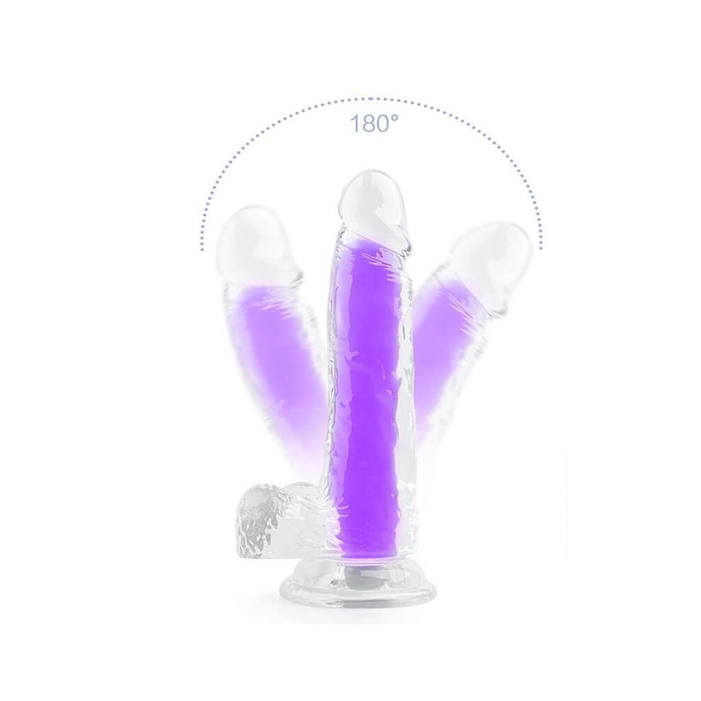 Immerse yourself in a world of sensual pleasure with the Color Glow phosphorescent dildo from ClearlyHorny. This 15 cm long, insertable dildo in a realistic shape offers you unparalleled pleasure. The transparent color of the dildo is complemented by a purple rod inside that glows in the dark and provides fascinating visual stimulation. With a width of 4.5 cm, this dildo guarantees maximum pleasure and fulfills your most intimate desires. The dildo is also equipped with a suction cup, which ensures a secure hold on various surfaces and allows you hands-free use. Made from high-quality TPE material, this dildo is comfortable to use and safe for the body. Experience intense moments of pleasure and relaxation with the Color Glow dildo from ClearlyHorny - your perfect companion for sensual adventures.