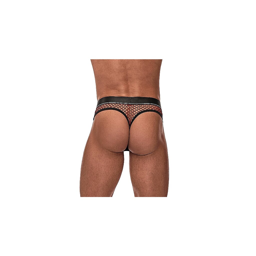 This model from Male Power's Cock Pit Net collection includes: A cock ring thong with a detachable snap pouch revealing an elasticated C-ring, a classic thong back, plush elasticated trim and a satin branded waistband. Size S/M / Material composition: 95% polyester 5% elastane