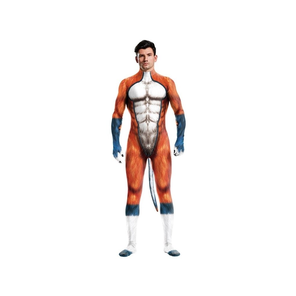 Mit Haar- und Pfotenmuster und langem Schwanz.