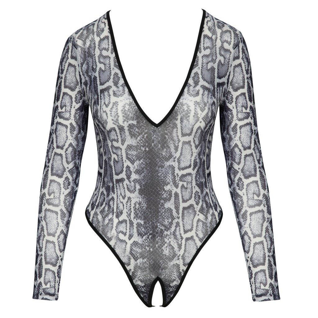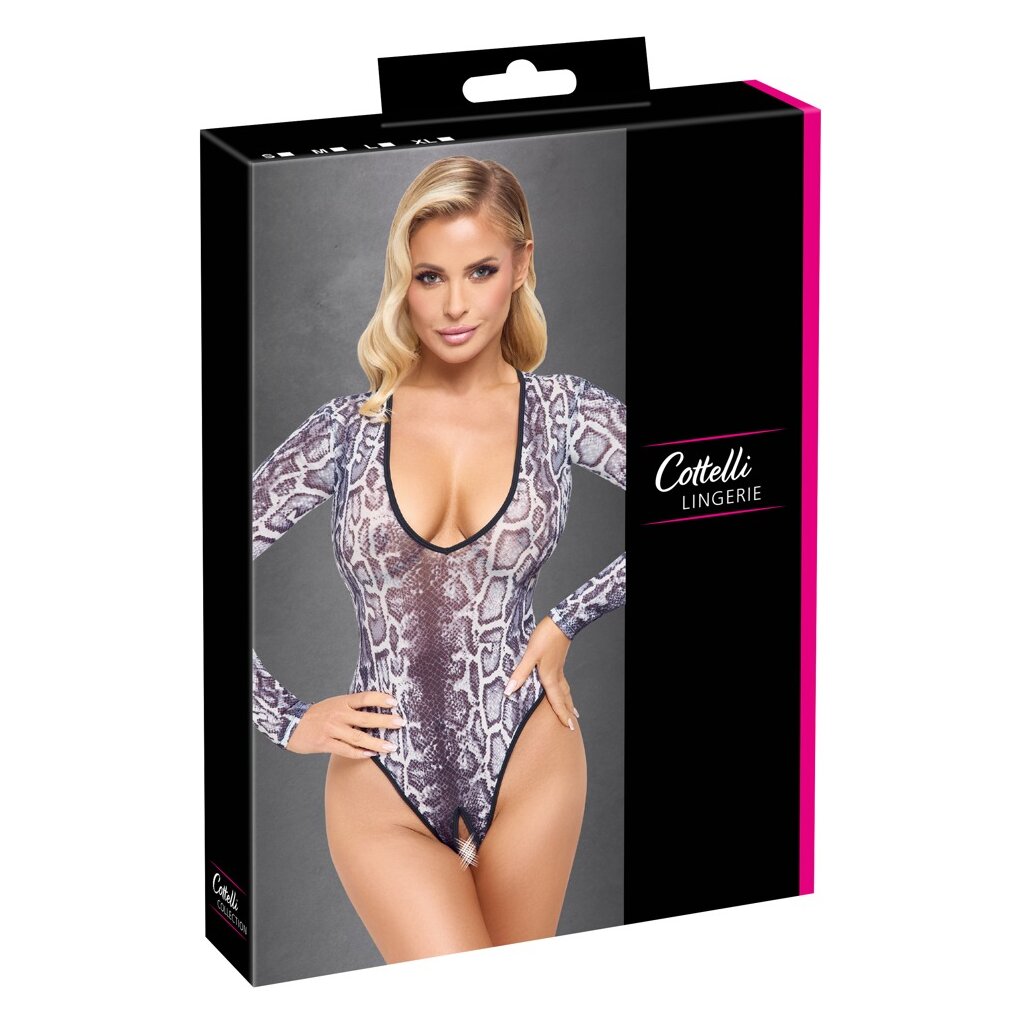 The body impresses with its exciting design with an extra deep neckline and high leg cut-outs that show you off perfectly. The transparent snakeskin-look powernet (printed) gives the bodysuit an exotic touch and emphasizes your curves in a seductive way. Made from 90% polyamide and 10% elastane, this bodysuit not only offers a sensual look, but also maximum comfort. Included in delivery is 1 x the breathtaking long-sleeved body from Cottelli LINGERIE - your new must-have for special moments. Emphasize your femininity and sense of style with this exquisite piece and immerse yourself in the world of seduction!