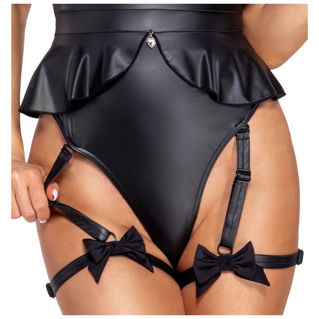 Stylisches schwarzes Bunny-Kostüm von Cottelli COSTUMES mit Träger-Body, Halsband und Stirnband mit Hasenohren. Trägerloser Tube-Body in elegantem Matt-Look. Knapper Rio-Stil mit hohem Beinausschnitt. Mit Schößchen an der Taille und kleinem Zieranhänger vorne. Rundum weich und elastisch für hohen Tragekomfort. Die Strumpfhalter mit Oberschenkelriemen, die mit Schleifen verziert sind, sind verstellbar – und können auch komplett entfernt werden. Halsband mit Schleife vorne, verstellbarer Klettverschluss hinten. Das Stirnband mit schwarz-weißen Hasenohren rundet den sexy Bunny-Look ab.