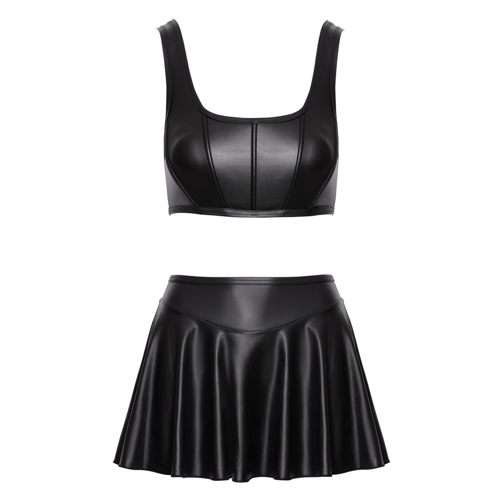 Kurzes Korsett-Oberteil und Minirock-Set von Cottelli PARTY. In trendigem, mattschwarzem Look weich und elastisch für maximalen Tragekomfort. Das Top hat formende Stäbchen auf der Vorderseite. Der Hakenverschluss auf der Rückseite ist an zwei Stellen verstellbar. Der ausgestellte Minirock hat einen schönen elastischen Bund.