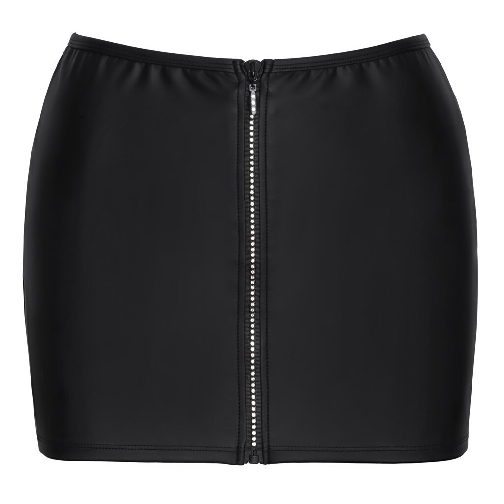 Mini-jupe moulante de Cottelli PARTY dans un look noir mat tendance. Elle est dotée d'une fermeture éclair pailletée sur toute la longueur à l'avant, ornée de strass de haut en bas. Avec une ceinture extensible et un élastique tout autour, elle est douce et souple pour un confort élevé et une grande liberté de mouvement.