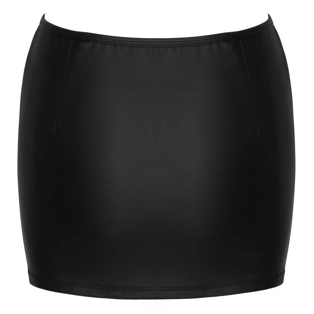 Tight mini skirt from Cottelli PARTY in a trendy black matte look. Features a full-length glitter zipper at the front, studded with rhinestones from top to bottom. With a stretch waistband and elasticated all around, it is soft and supple for high wearing comfort and freedom of movement.