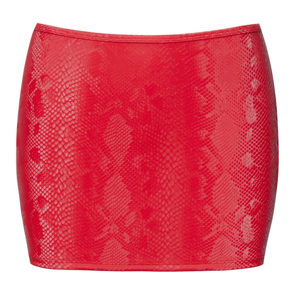 Extra short skirt from Cottelli PARTY in trendy red snakeskin look. Light, stretchy, and soft with a narrow, comfortable stretch waistband. With a zipper at the back. Versatile to combine.