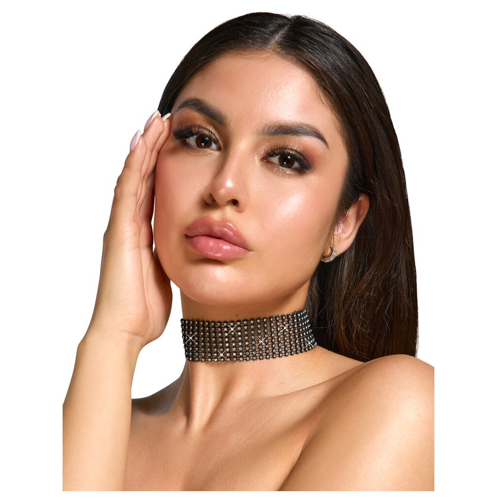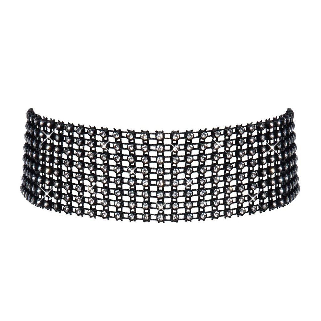 Collier noir scintillant de Cottelli ACCESSORIES, orné d'innombrables strass. Doudou de 3 cm de large/hauteur. Sur la nuque, il est muni d'un fermoir à mousqueton multiréglable.