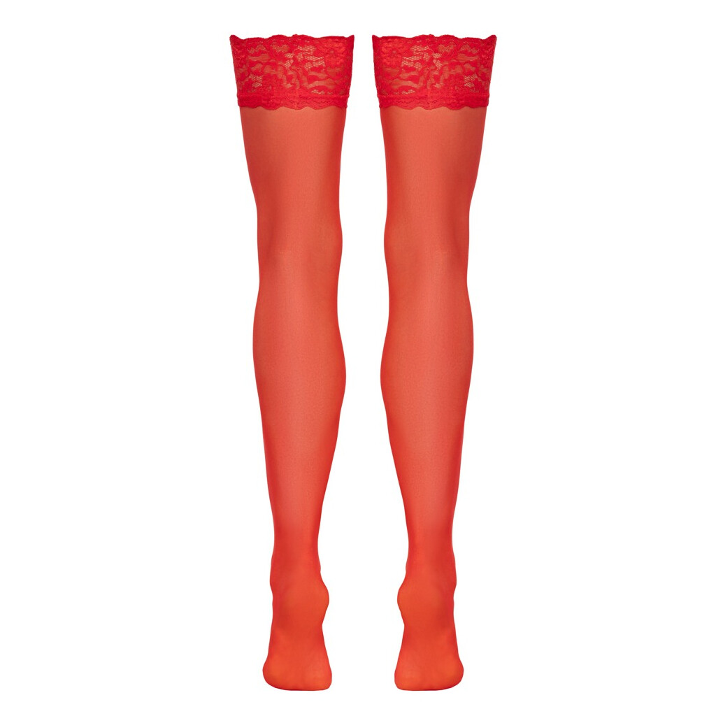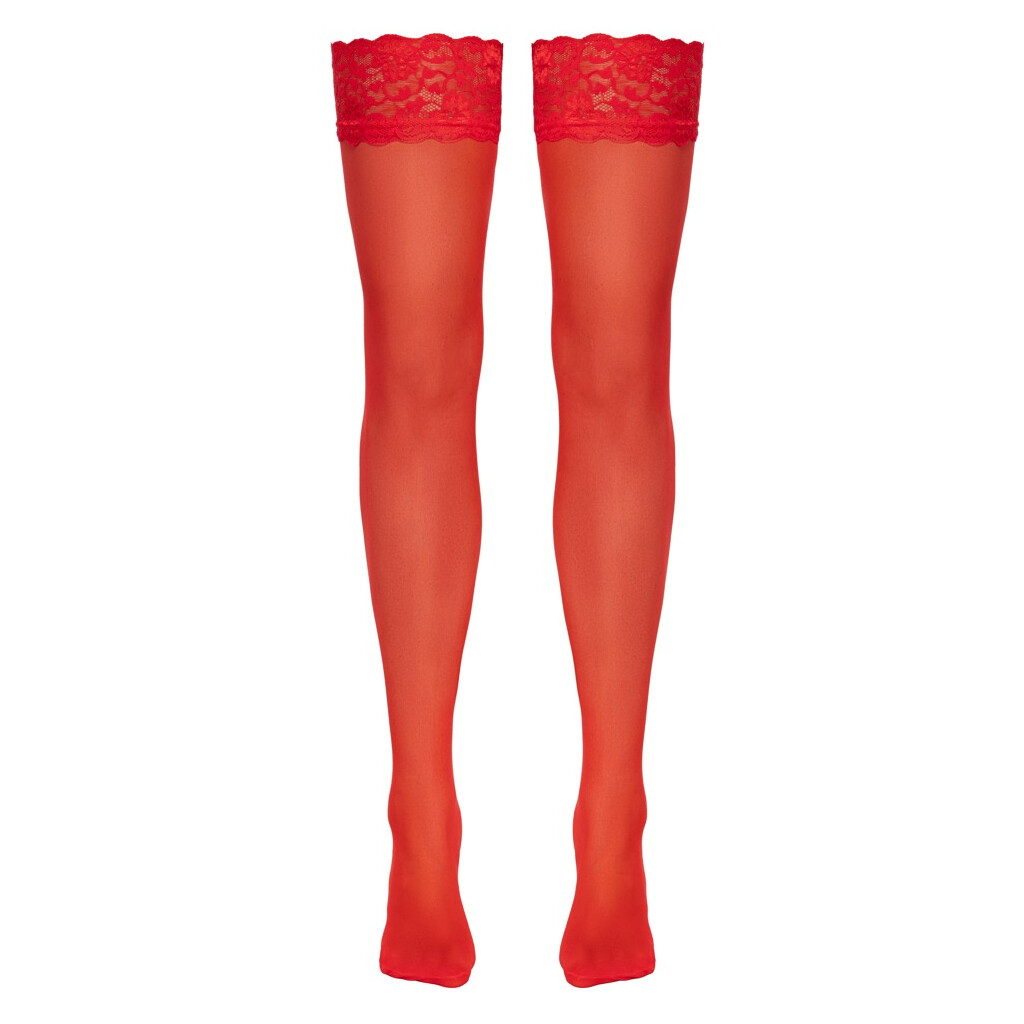 Seidige Strümpfe von Cottelli LEGWARE mit 9 cm breitem elastischem Spitzenbund. Garnstärke 20 Denier. Oeko-Tex zertifiziert.