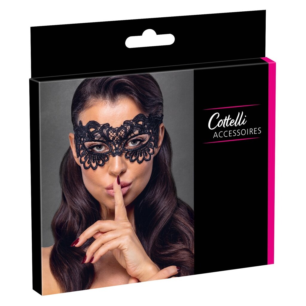 Wunderschöne schwarze Augenmaske mit hochwertiger, filigraner Stickerei um die Augenöffnungen. Mit Spitzenbändern. Weich und geschmeidig für optimale Passform und angenehmen Tragekomfort.